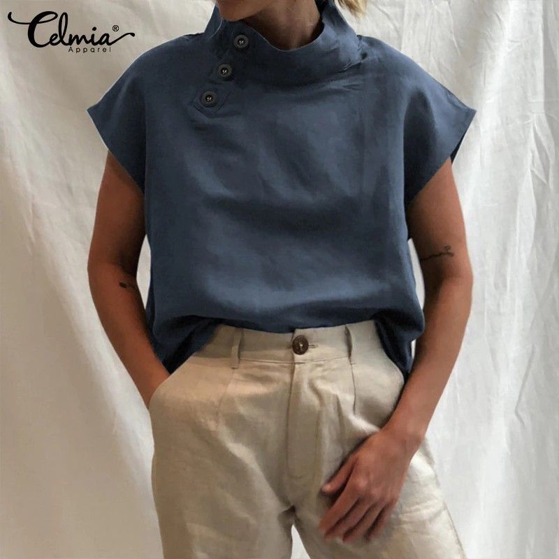 Celmia Şık Kadın Gömlek en yeni Yaz Pamuk Keten Büyük Boy Bluzlar Kısa Kollu Blusas Rahat Gevşek Camisas Katı Tunik Üst