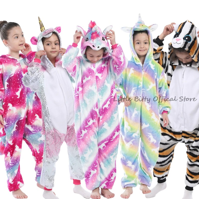 Çocuk Kigurumi Unicorn Pijama Çocuklar Bebek Hayvan Tulum Tulum Onesie Panda Pijama Kız Cosplay Pijama
