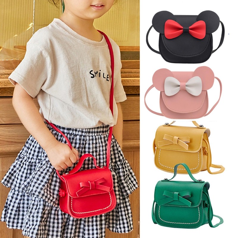 Çocuk Yürümeye Başlayan Bebek Kız Prenses Omuz Çantaları Çanta Yürümeye Başlayan Bebek Pu Mini Sevimli Papyon Postacı Çantası 7 Renk