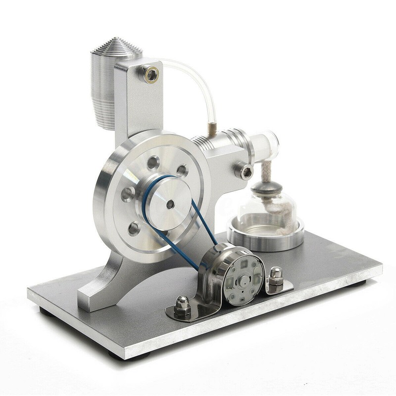 Bu, yakıtın sürekli yakıldığı ve pistonun bir ortam olarak hava (veya helyum veya hidrojen) genişlemesiyle hareket ettiği harici bir yanma motorudur. Ve genleşme gazı soğuk odada soğutulur ve döngü tekrarlanır. Sadece küçük bir alkol lambası, hızlı dönüş yapabilir ve güçlü güç oluşturabilirsiniz.