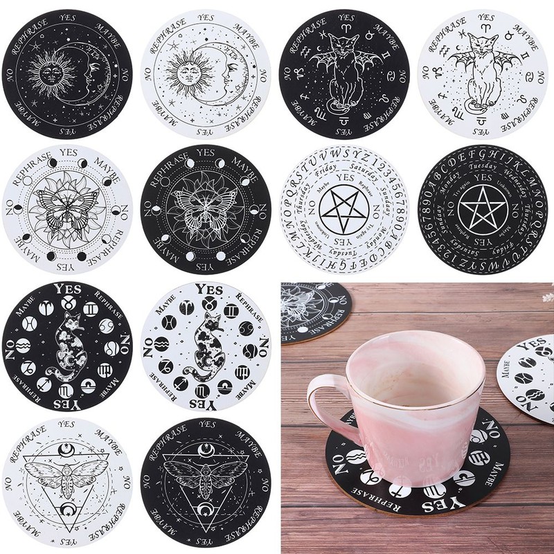 Diy Ahşap Sarkaç Kurulu Siyah Beyaz Renk Yıldız Güneş Ve Ay Kehanet Için Mesaj Panosu Metafizik Sunak Dekorasyon