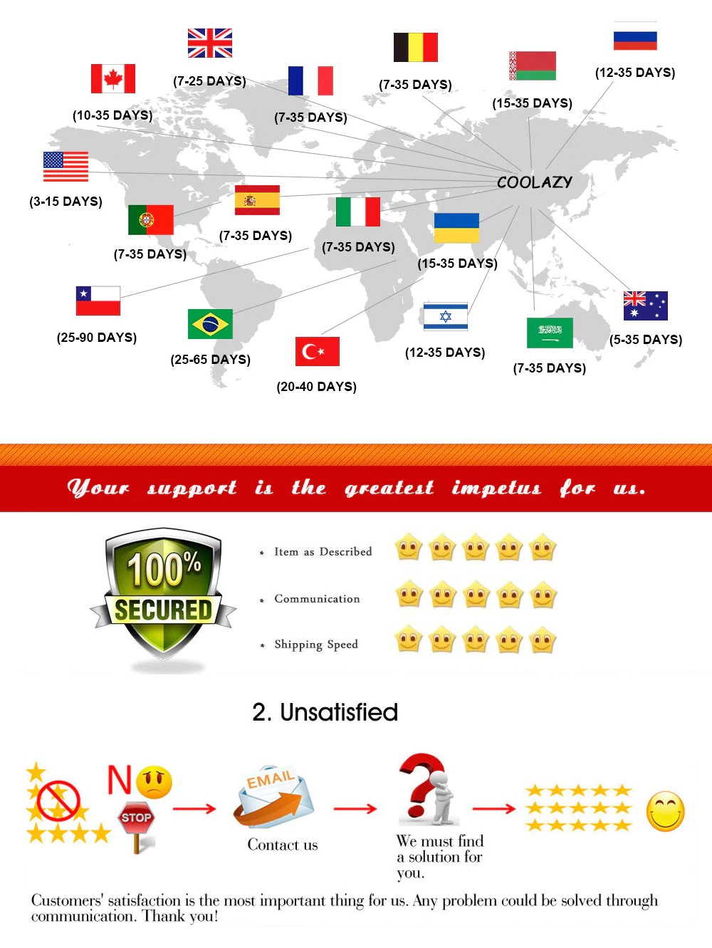 3. Geribildirim 4 veya 5 yıldız bırakın lütfen, bu yüzden siparişinizi aldığınızı ve öğeyle mutlu olduğunuzu biliyoruz. Sizin için aynısını yapacağız. Satın alma, lütfen geribildirim veya anlaşmazlık açmadan önce bizimle iletişime geçtiğinizden emin olun, bu yüzden sorunu olumlu bir şekilde çözebiliriz. Hayal edebileceğiniz gibi, iyi geri bildiriminiz başarımız için hayati önem taşımaktadır.