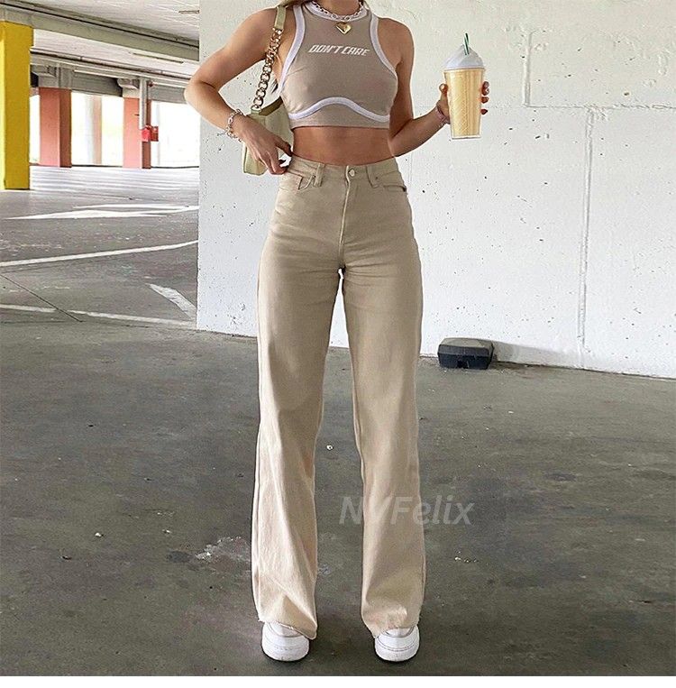 Moda Gevşek Kot Pantolon Kadınlar Için Yüksek Bel Streç Geniş Bacak Femme Pantolon Rahat Konfor Denim Anne en yeni Yıkanmış Jean Pantolon