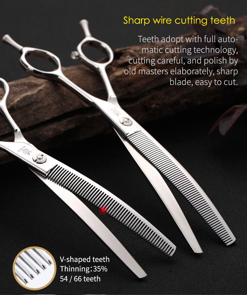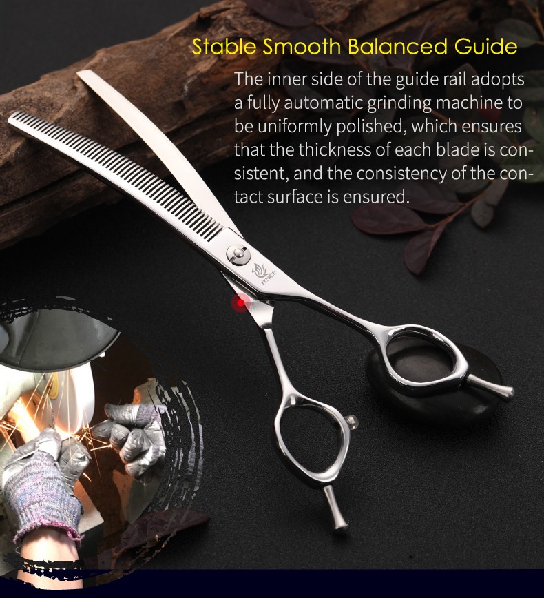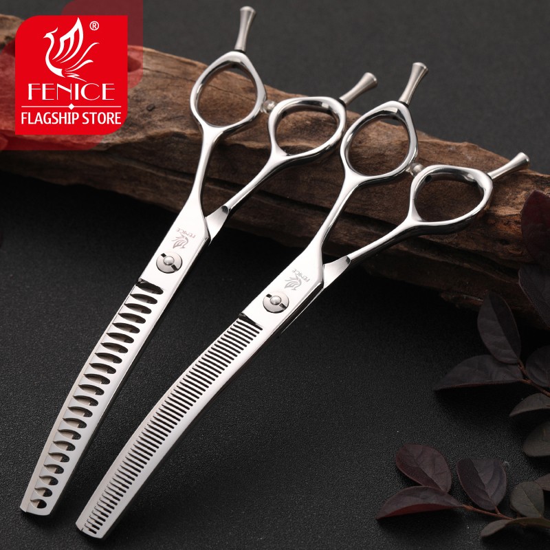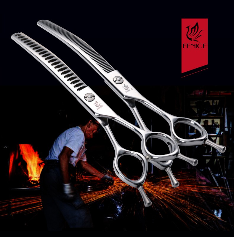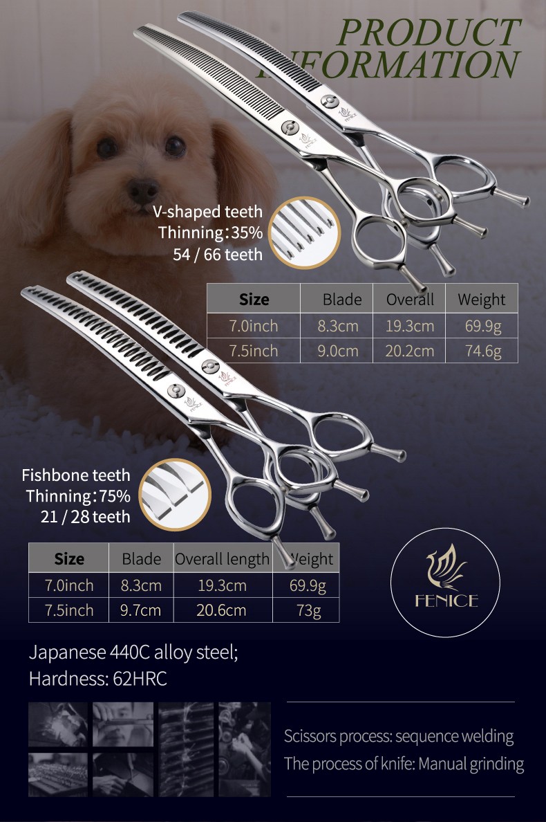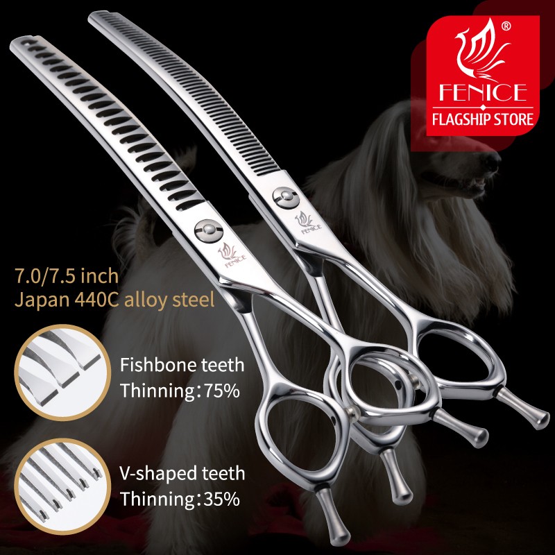 Fenice 7.0/7.5 Inç Profesyonel Köpek Bakım Makası Kavisli İnceltme Makas Köpek Yüz Vücut Kesme Jp 440C Yüksek Kaliteli