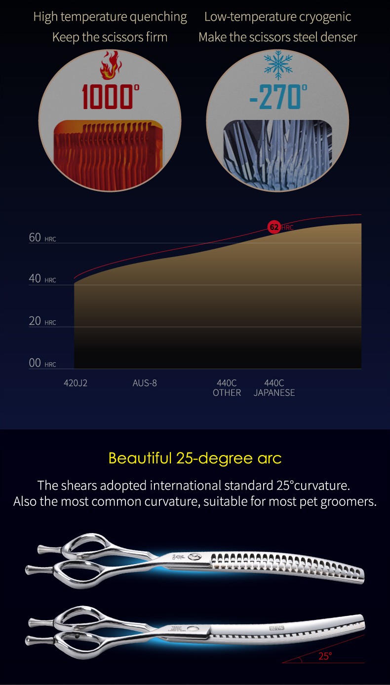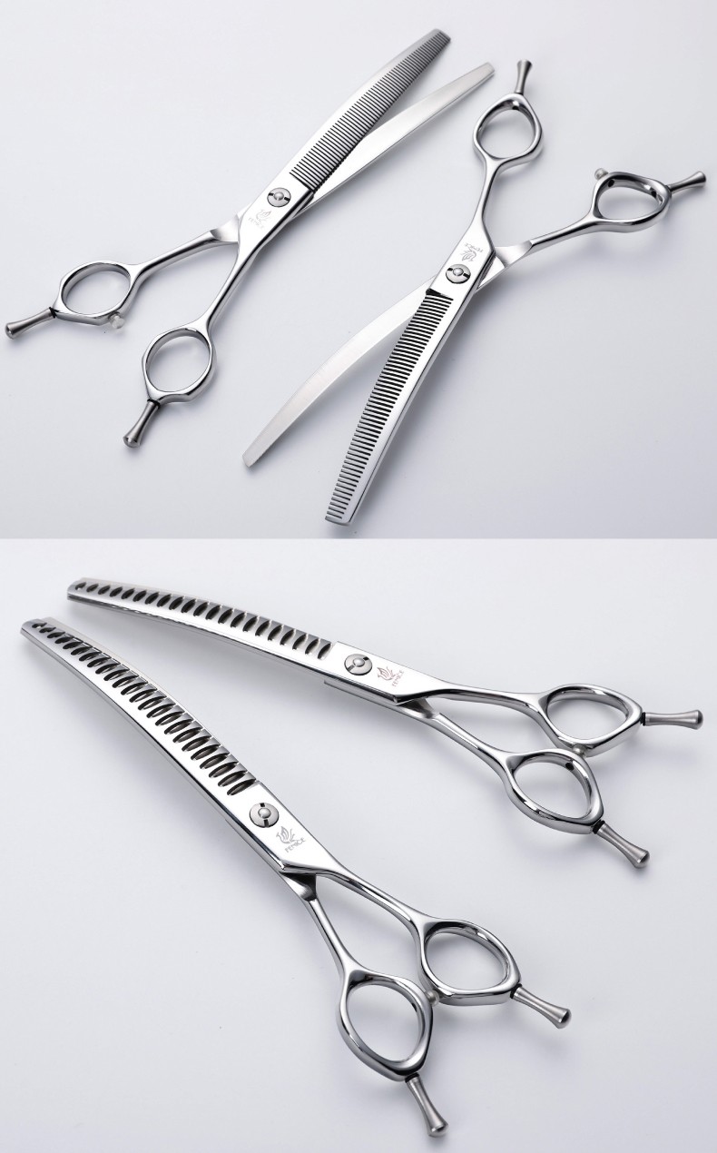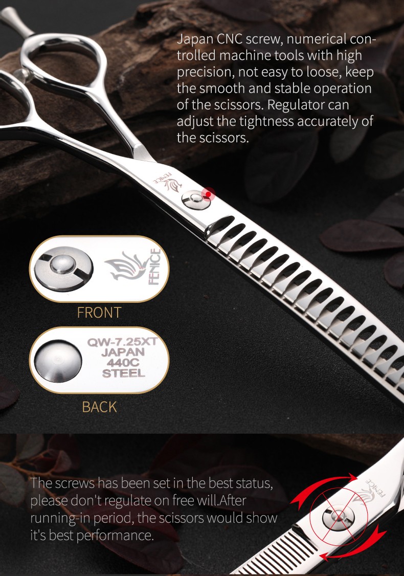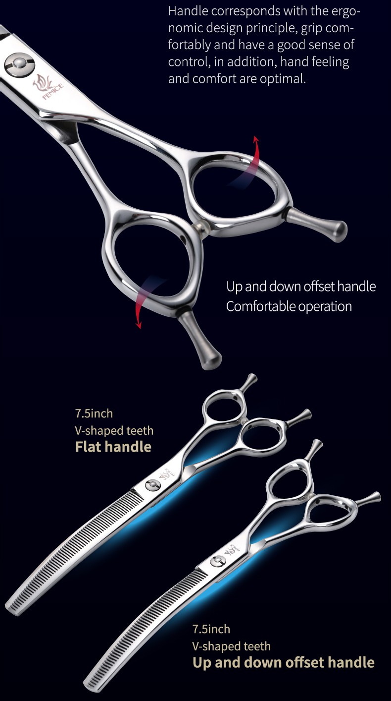 Fenice 7.0/7.5 Inç Profesyonel Köpek Bakım Makası Kavisli İnceltme Makas Köpek Yüz Vücut Kesme Jp 440C Yüksek Kaliteli