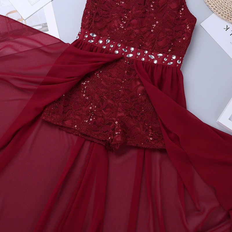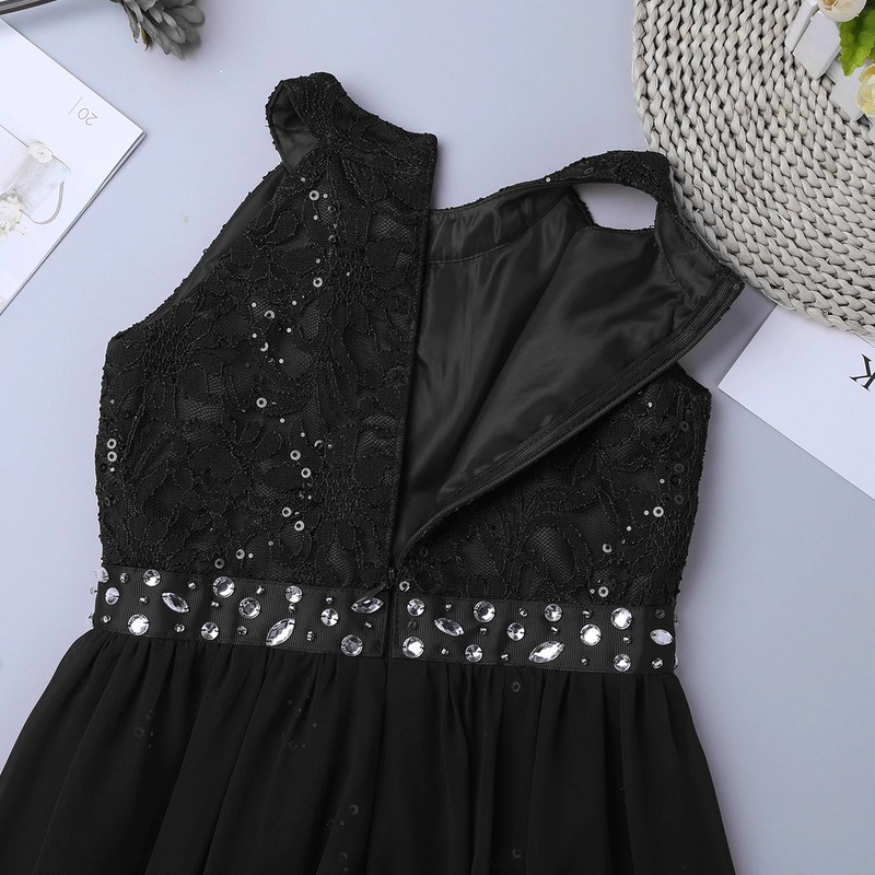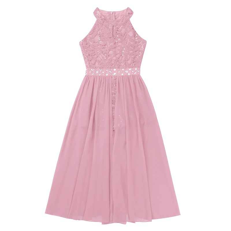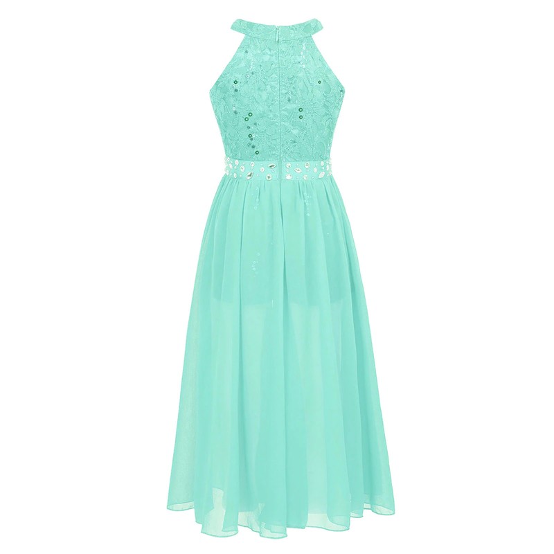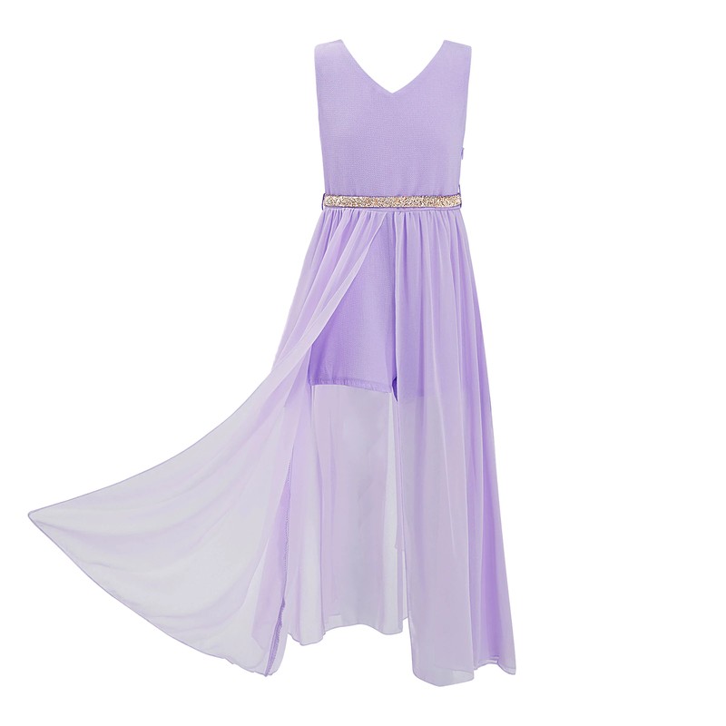 1 kat maxi uzunluk şifon kaplama bel etrafında takılır. Seti tamamlamak için bir yapay elmas kemer ile birlikte gelir. Kızın için güzel ve şık elbise.