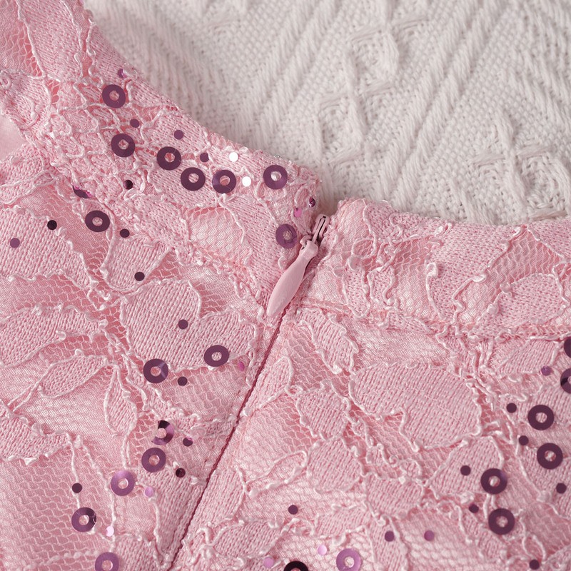 Gizli merkez arka fermuar kapatma. 2 kat elbise, üst parlak tül katmanları, 1 astar. Kızın için güzel ve şık elbise.
