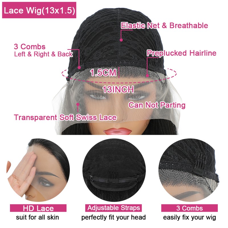 Düz Dantel Ön Peruk: 7-10 Gün Teslimat