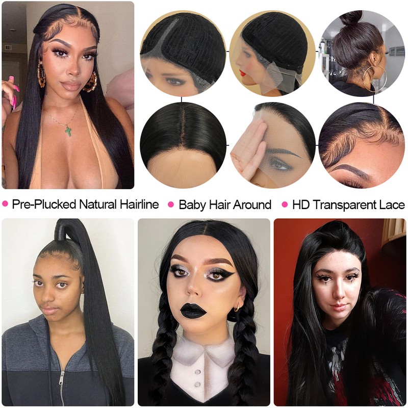 • Beauebony Sentetik Tam Dantel Ön Peruk Kadınlar Için 360 Dantel Ön Peruk T Parça Siyah Düz Dantel Ön Peruk S Isıya Dayanıklı Saç