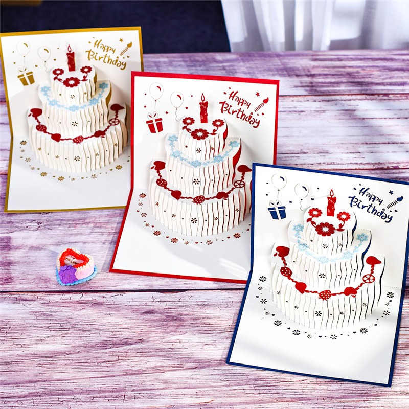 Mutlu Doğum Günü Kartı Kız Çocuklar Için Eşi Koca 3D Doğum Günü Pastası Pop-Up Tebrik Kartları Kartpostallar Hediyeler Zarf Ile