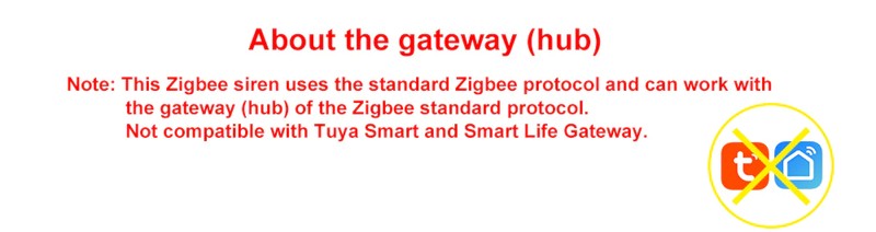 Not: bu Zigbee siren standart Zigbee protokolünü kullanır ve Zigbee standart protokolünün ağ geçidi (hub) ile çalışabilir. Tuya akıllı veya akıllı yaşam ağ geçidi ile uyumlu değil.