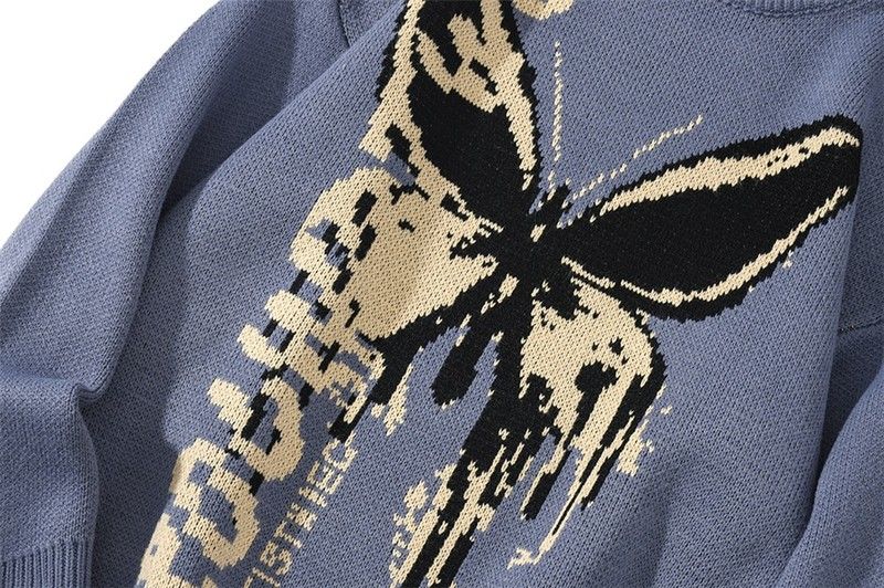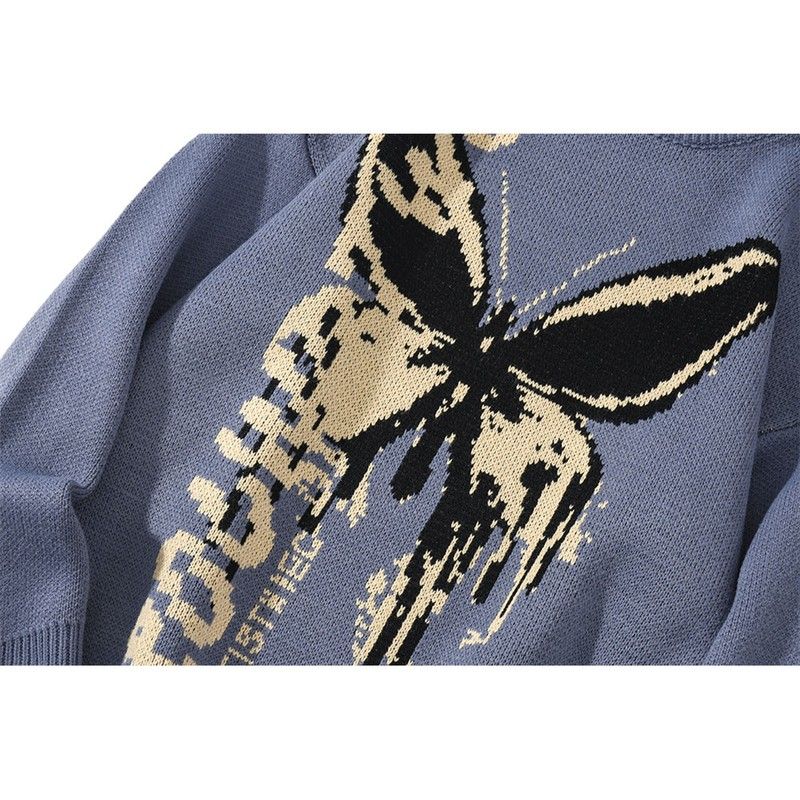 Hip Hop tişört Erkek Kazak En sonuncu Harajuku Moda Kelebek Erkek Gevşek Üstleri Rahat Streetwear Kazak Kazak