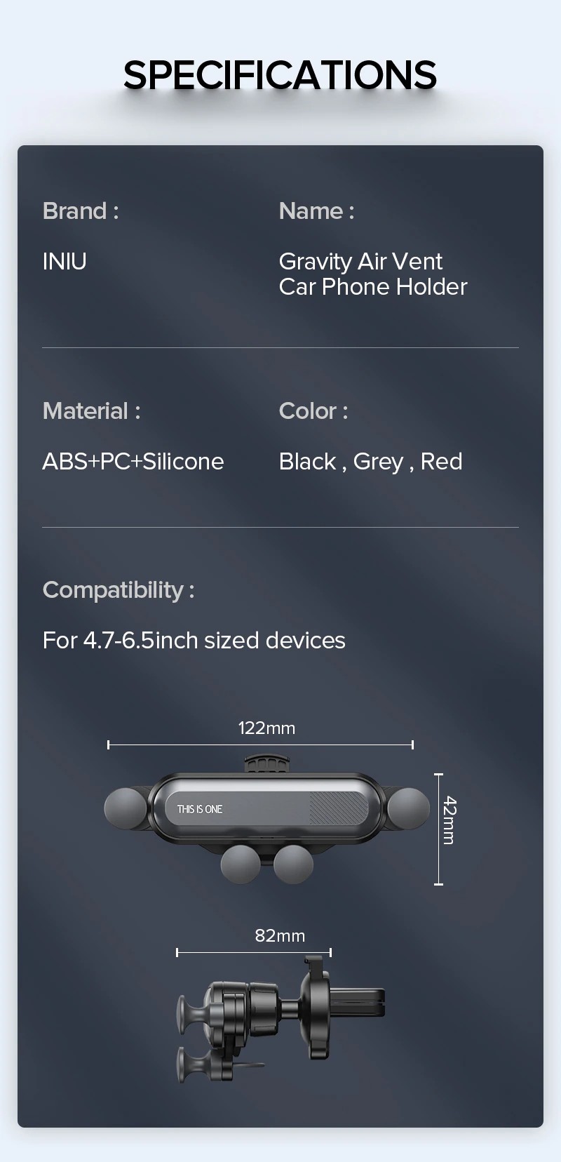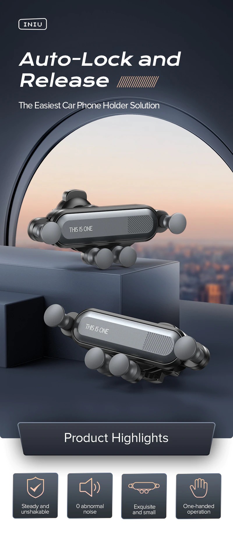 Iniu Yerçekimi Araç Telefonu Tutucu Mobil Standı Akıllı Telefon Gps Desteği Dağı Iphone 13 12 11 Pro 8 Samsung Huawei Xiaomi Redmi Lg