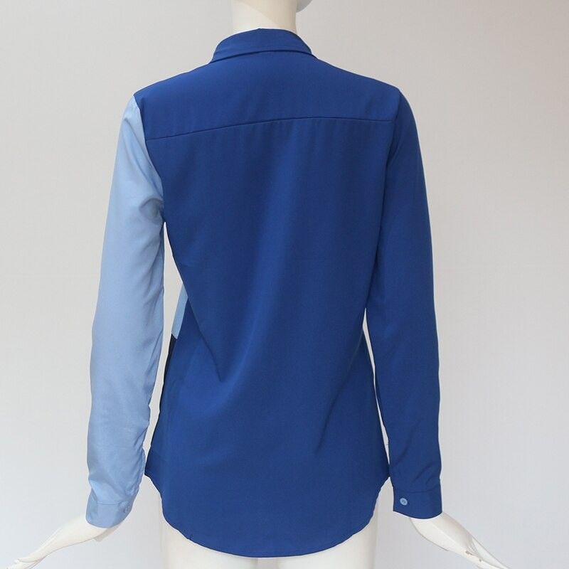 En sonuncu Ilkbahar Ve Sonbahar Rahat Düz Renk Dikiş V Yaka Şifon Gömlek Bayan Üst