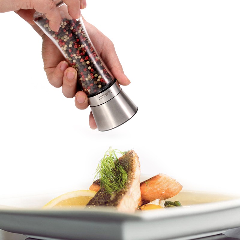 Leeseph 18/8 Brushed Stainless Steel Pepper Mill And Salt Mill, 6 Oz Glass Tall Body, 5 Grade Adjustable Ceramic Rotor