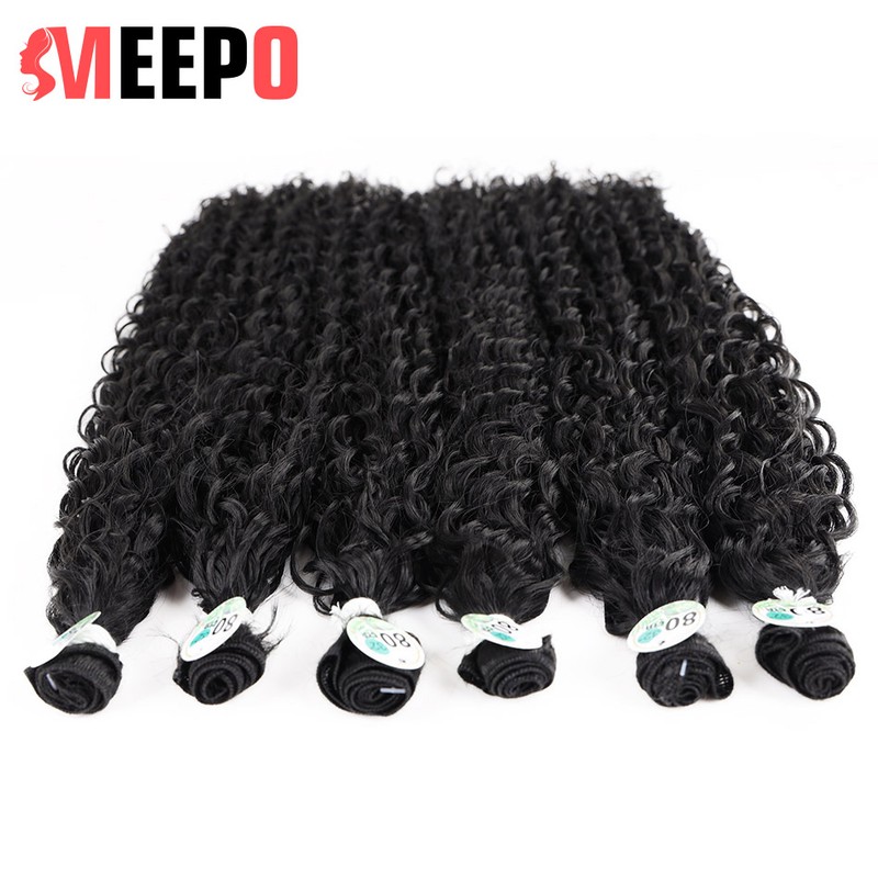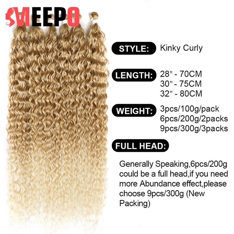 Meepo Sentetik Saç Demetleri Kinky Kıvırcık Saç Uzantıları Ombre Siyah 70-80Cm Yumuşak Süper Uzun Dokuma Hairtress 9 Adet Tam Kafa