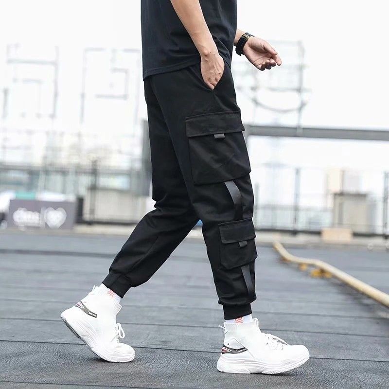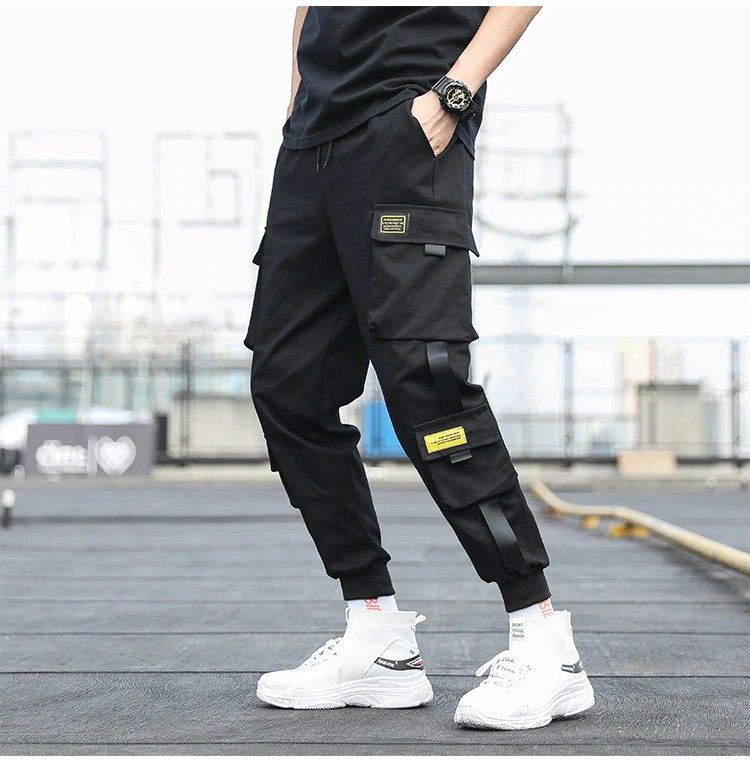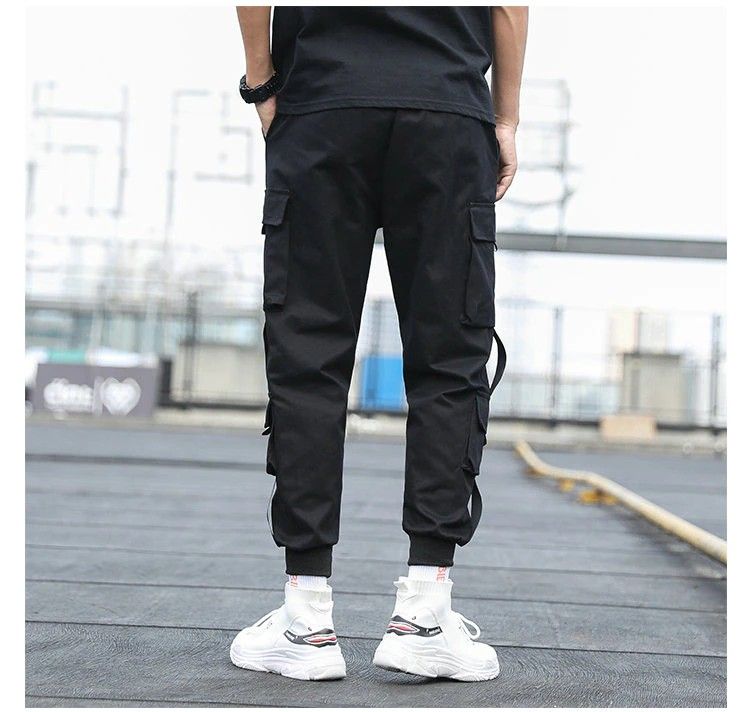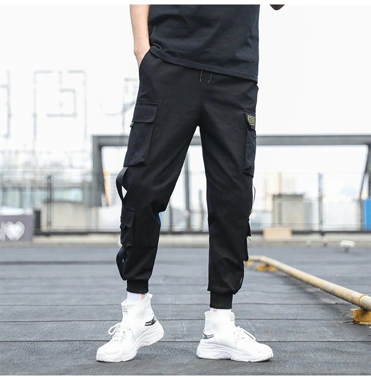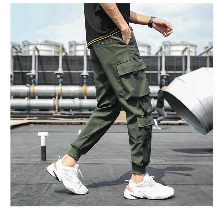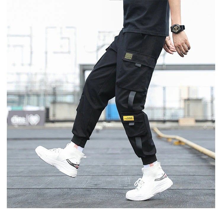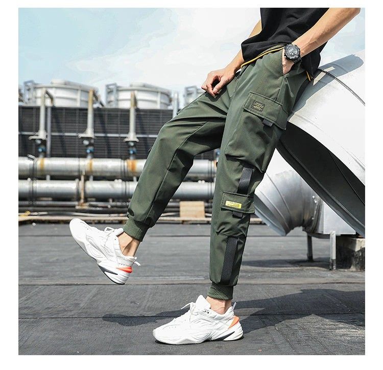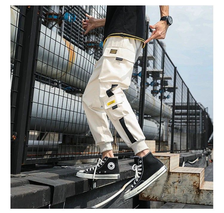 Erkek Yan Cepler Kargo Harem Pantolon en yeni Şeritler Siyah Hip Hop Rahat Erkek Joggers Pantolon Moda Rahat Streetwear Pantolon