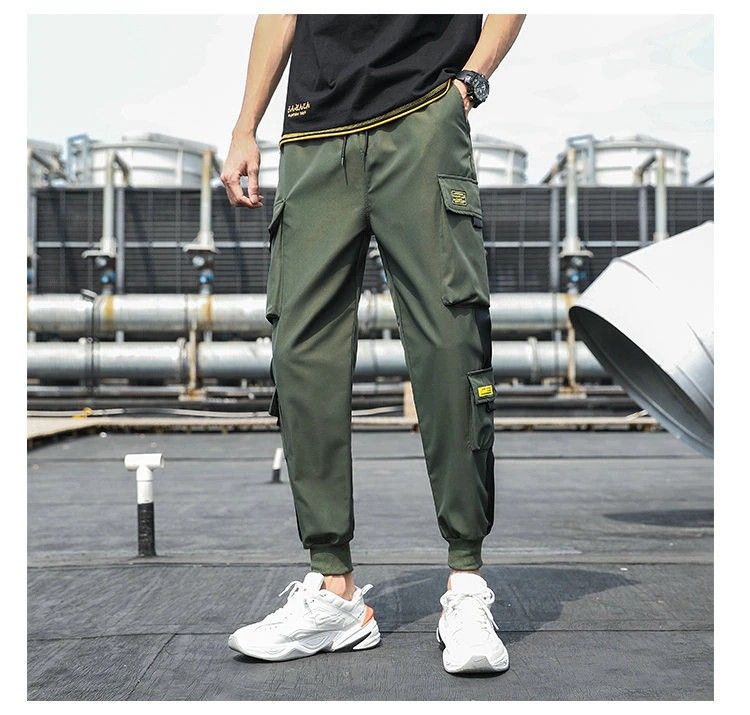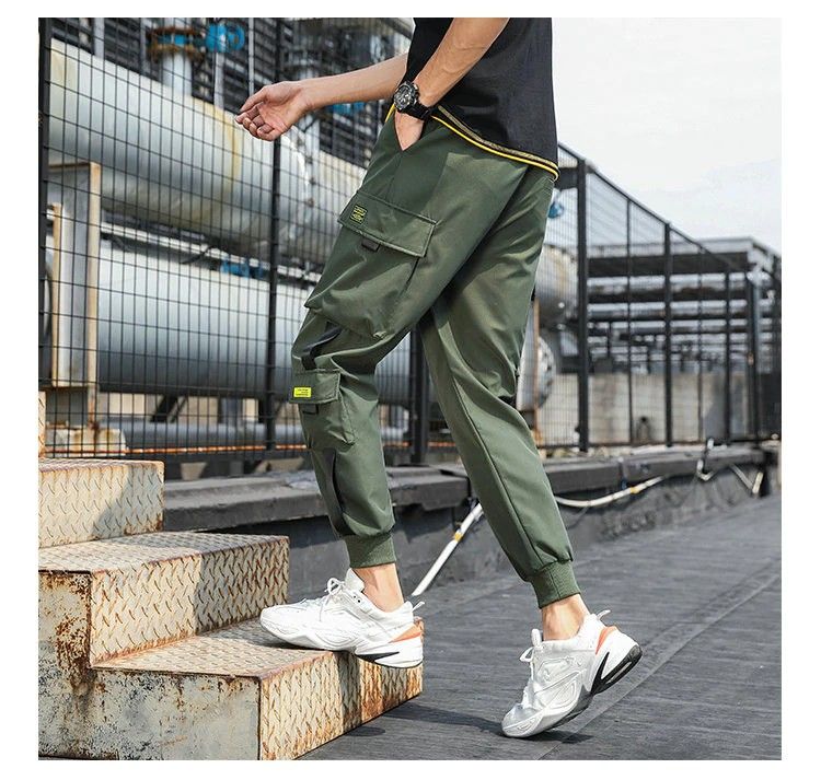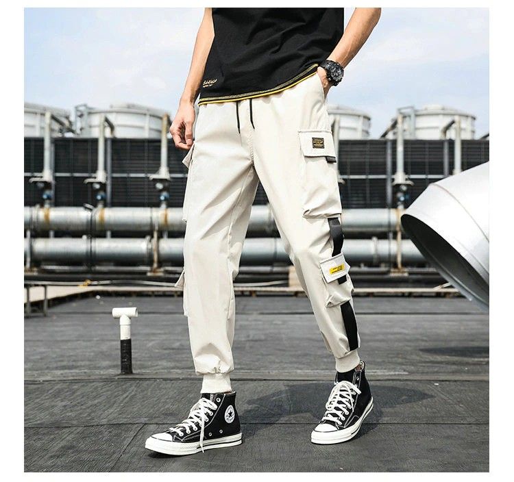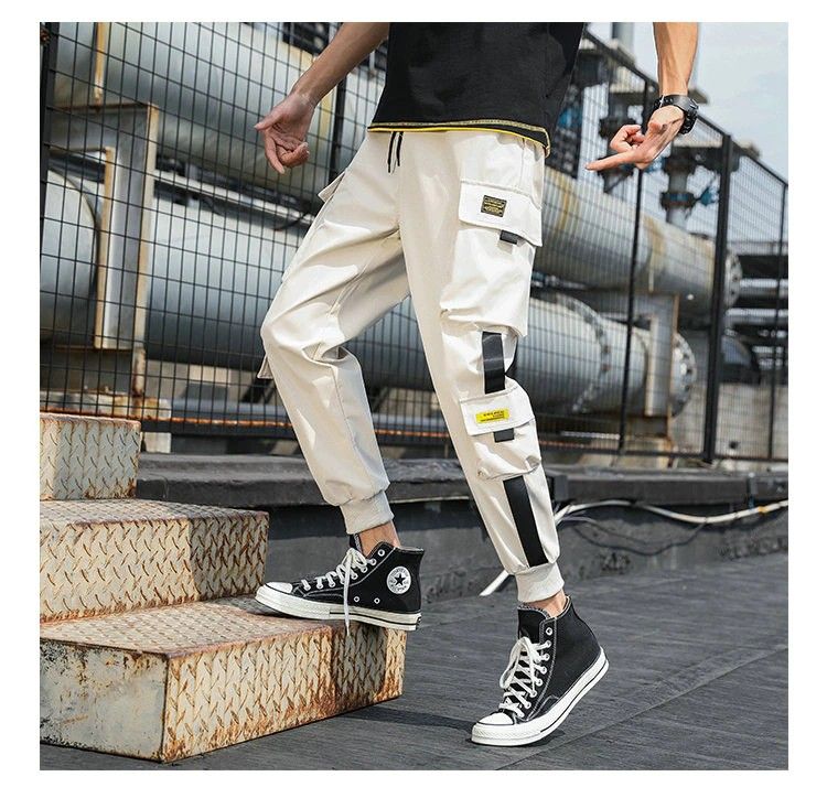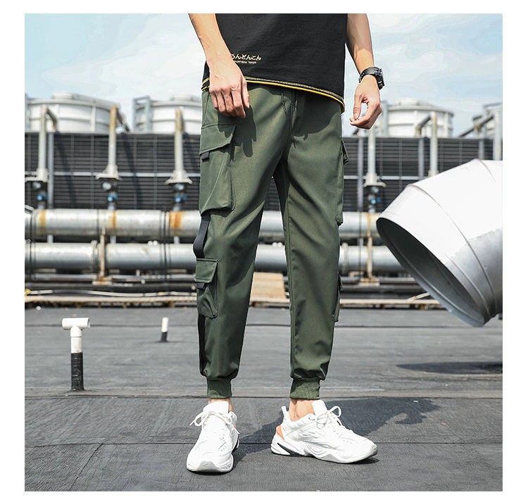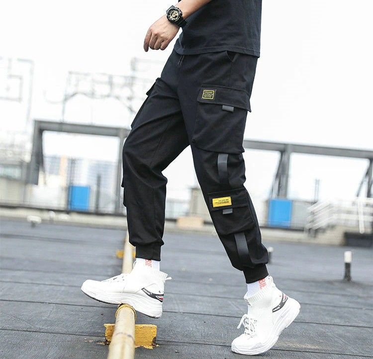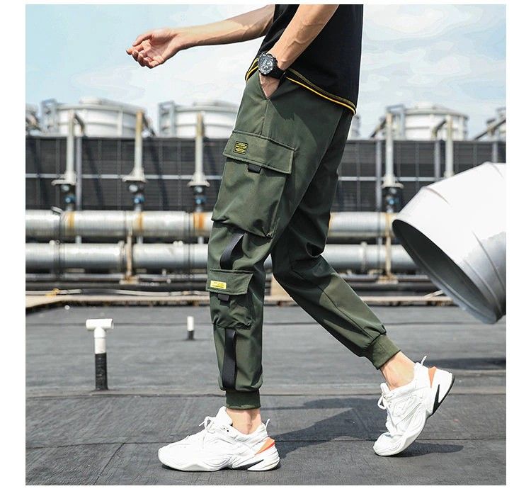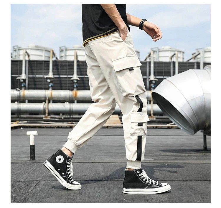 Erkek Yan Cepler Kargo Harem Pantolon en yeni Şeritler Siyah Hip Hop Rahat Erkek Joggers Pantolon Moda Rahat Streetwear Pantolon