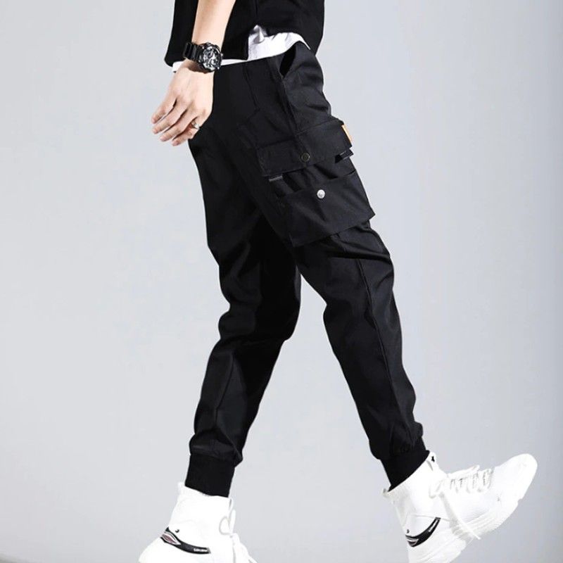 2021 erkek kargo pantolon siyah kravat ayak Harem Jogger ayak bileği uzunlukta pantolon ile büyük cep spor Streetwear erkek rahat erkek Sportwear