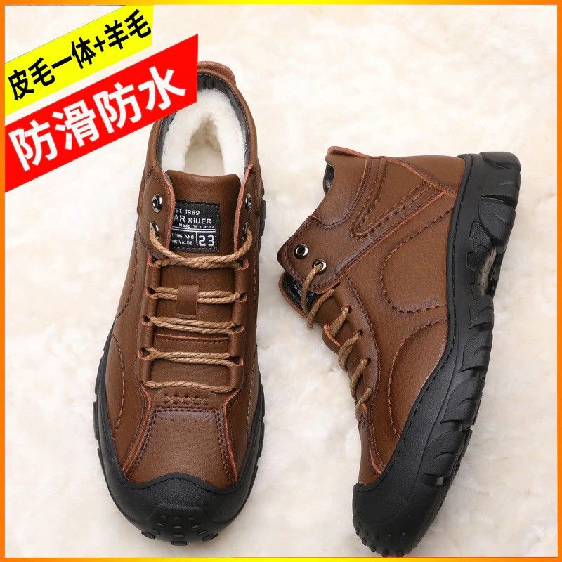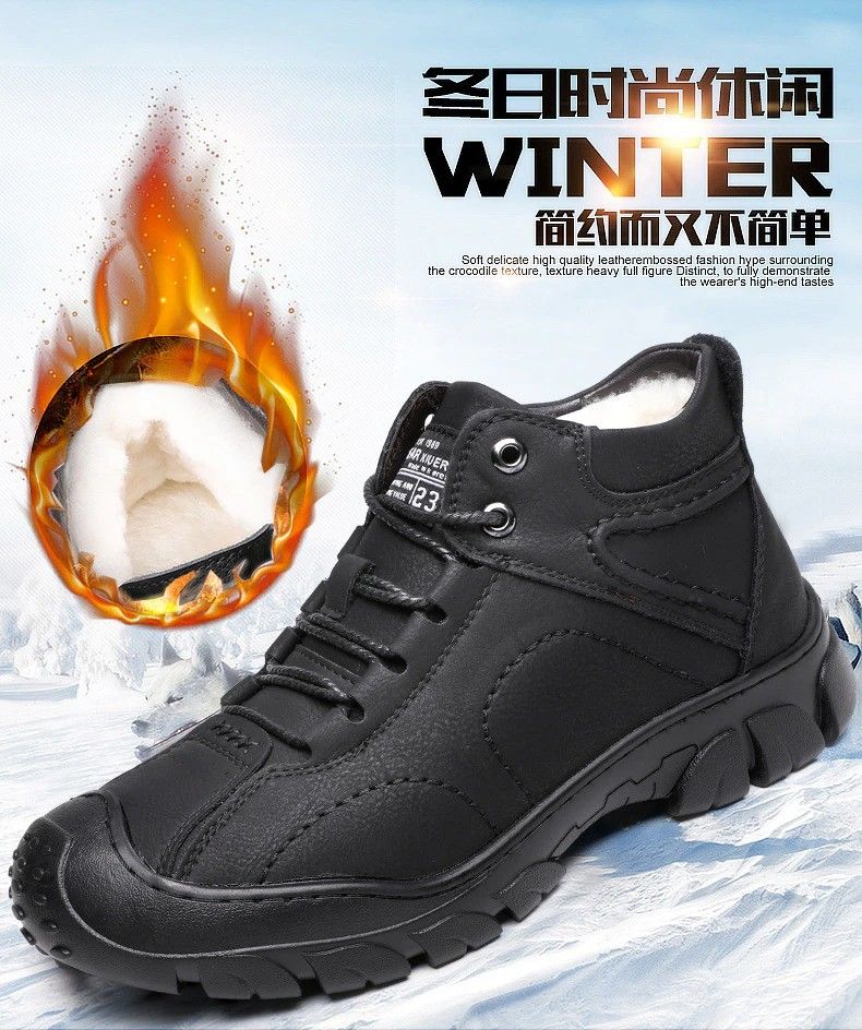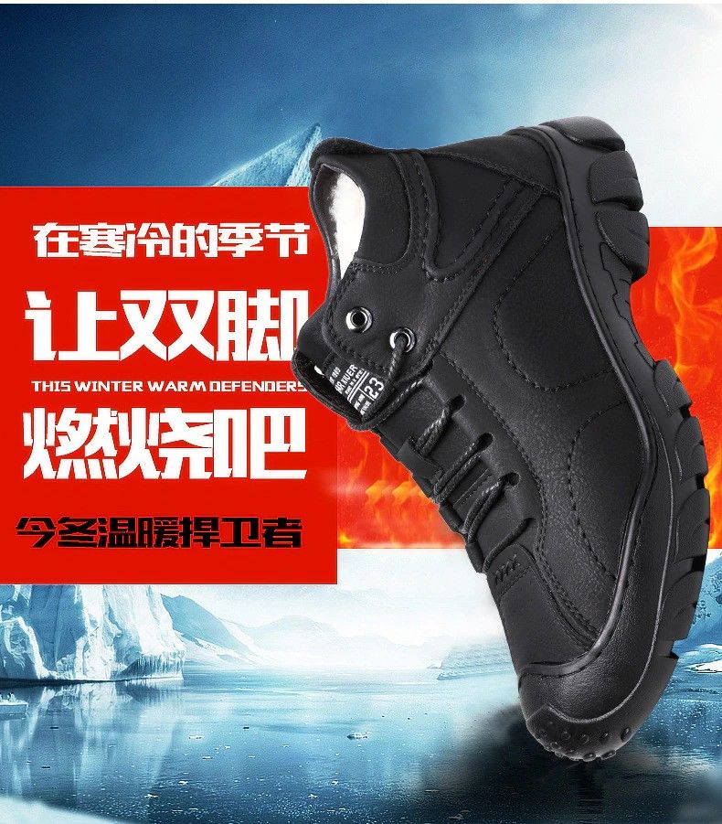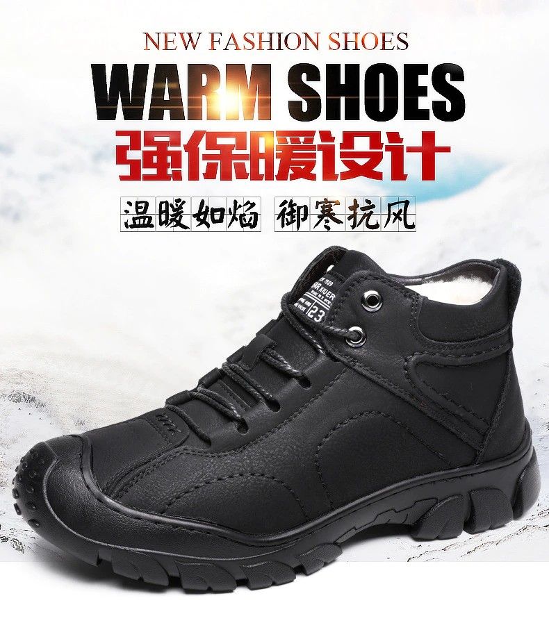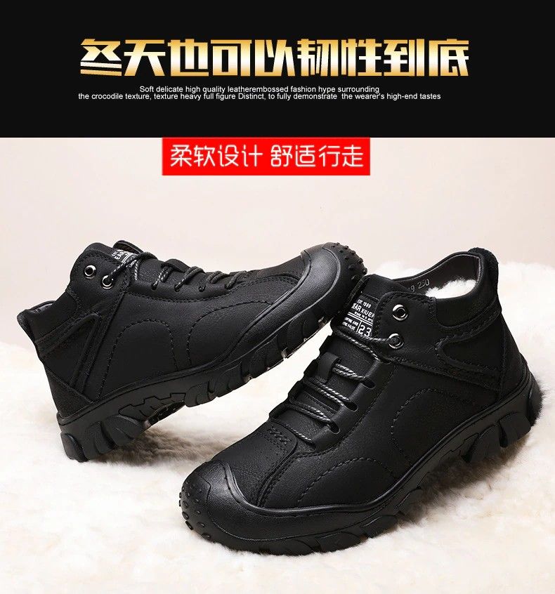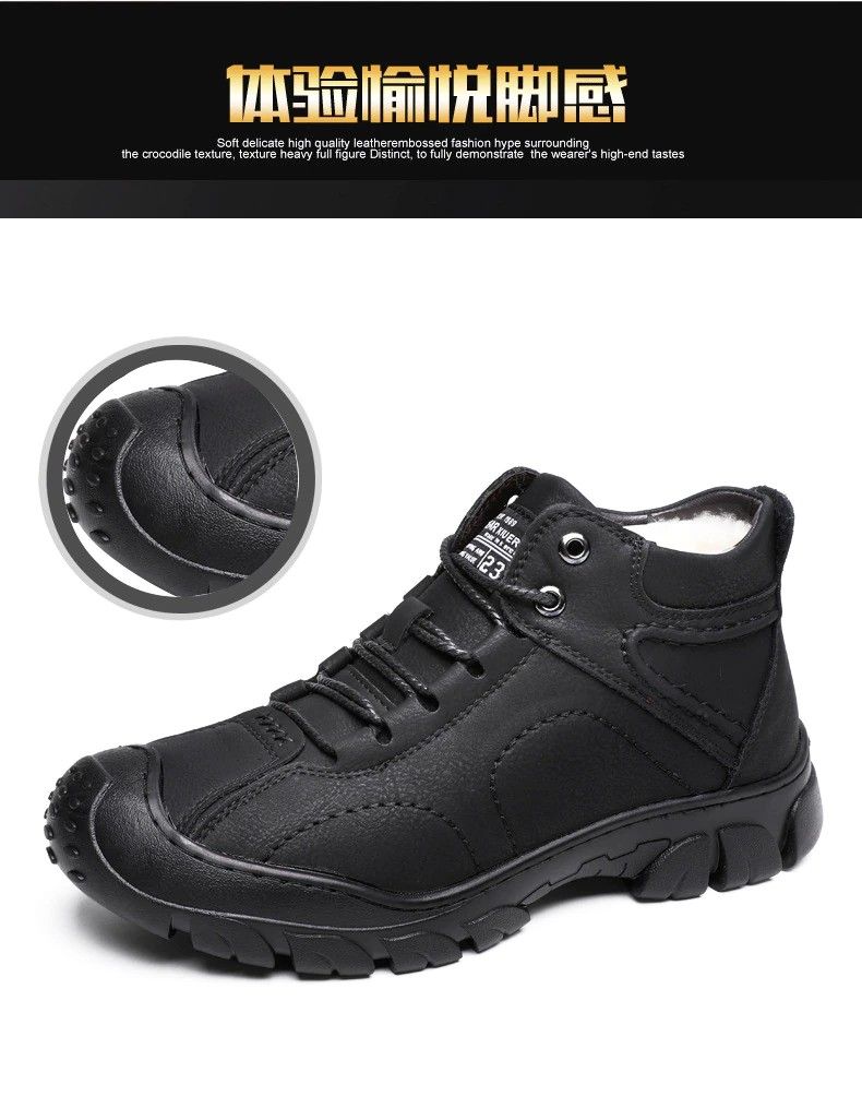 • Erkekler Kış Kar Botları Su Geçirmez Deri Sneakers Süper Sıcak Erkek Botları Açık Erkek Yürüyüş Botları Iş Ayakkabısı