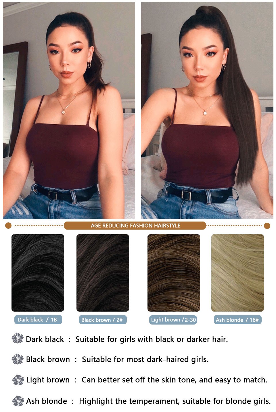 My-Diva Uzun Düz Isıya Dayanıklı Sentetik At Kuyruğu Saç Uzatma Etrafında Sarın Sahte Saç Tokası Kahverengi At Kuyruğu