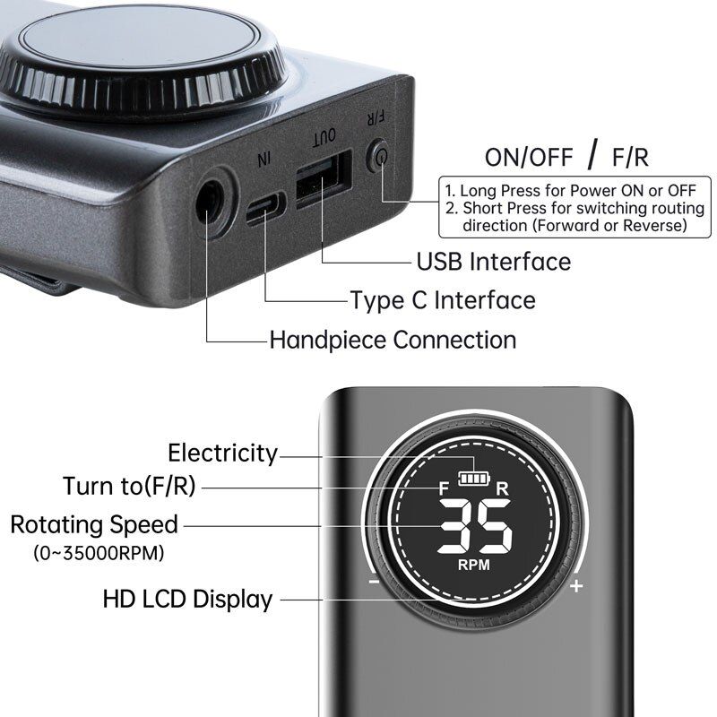 Hız: 0-35,000 RPM hızını ayarla