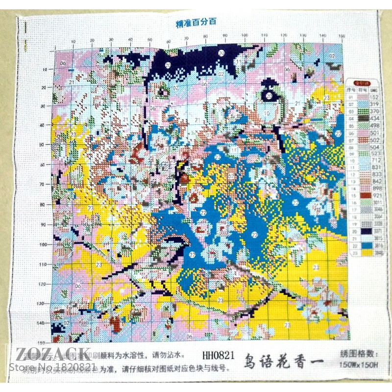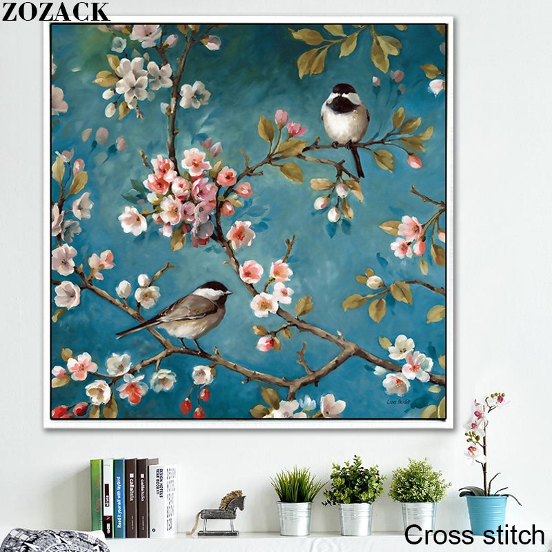 Zozack İğne, Dmc Diy Çapraz Dikiş, Tam Nakış Kitleri, Erik Çiçeği Birdie Desenleri Çin Çapraz Dikiş Baskılı Canva Üzerinde