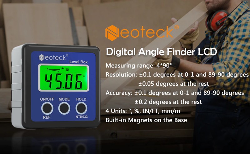 Neoteck Hassasiyetli Dijital İnklinometre Elektron Gonyometreler 4*90 Derece Manyetik Taban Dijital İletki Açı Bulucu Konik Kutusu