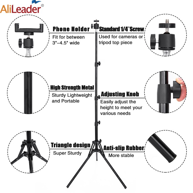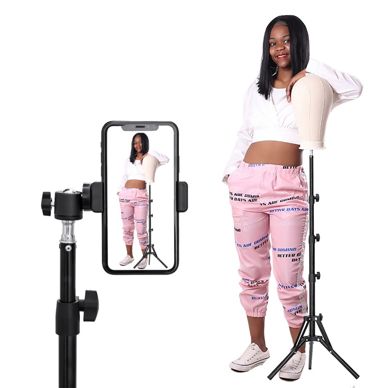 152cm yüksek peruk standı için, biz sadece tuval kafaları yerleştirmek ve peruk yapmak değil, aynı zamanda cep telefonları yerleştirmek, selfie'ler almak ve video çekmek değil, iki tip üst eklem var.