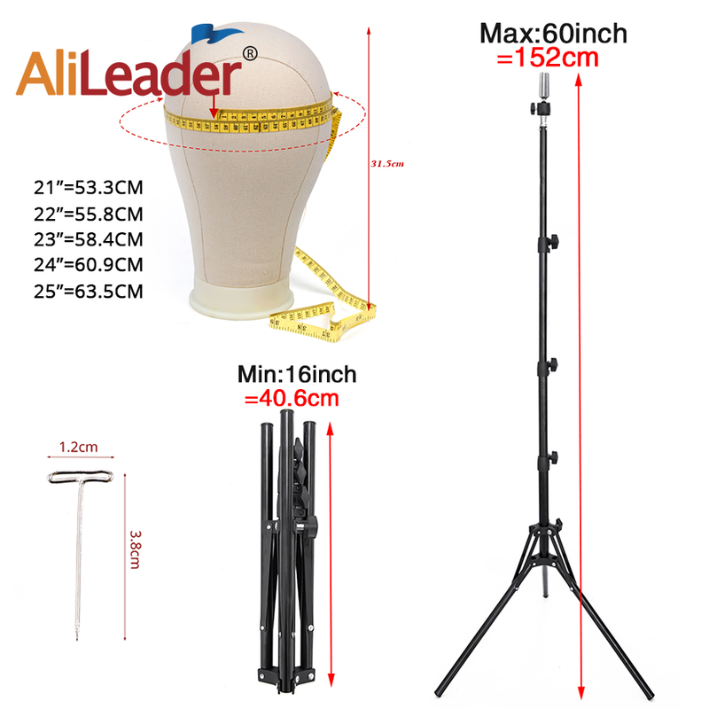 Alileader Yeni 152Cm/64Cm Peruk Standı Peruk Tripod Manken Tuval Blok Kafa Ayarlanabilir Tripod Standı Peruk Yapımı Kiti Tpins Hediye