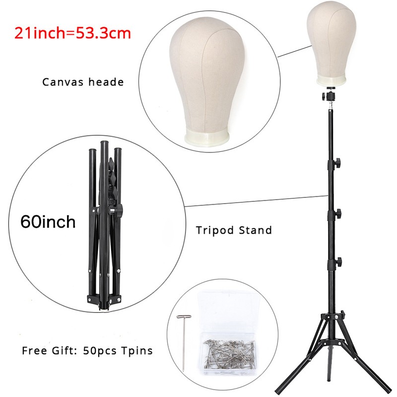1pcs mannequin head holder, tripod: 1pcs canvas mannequin head