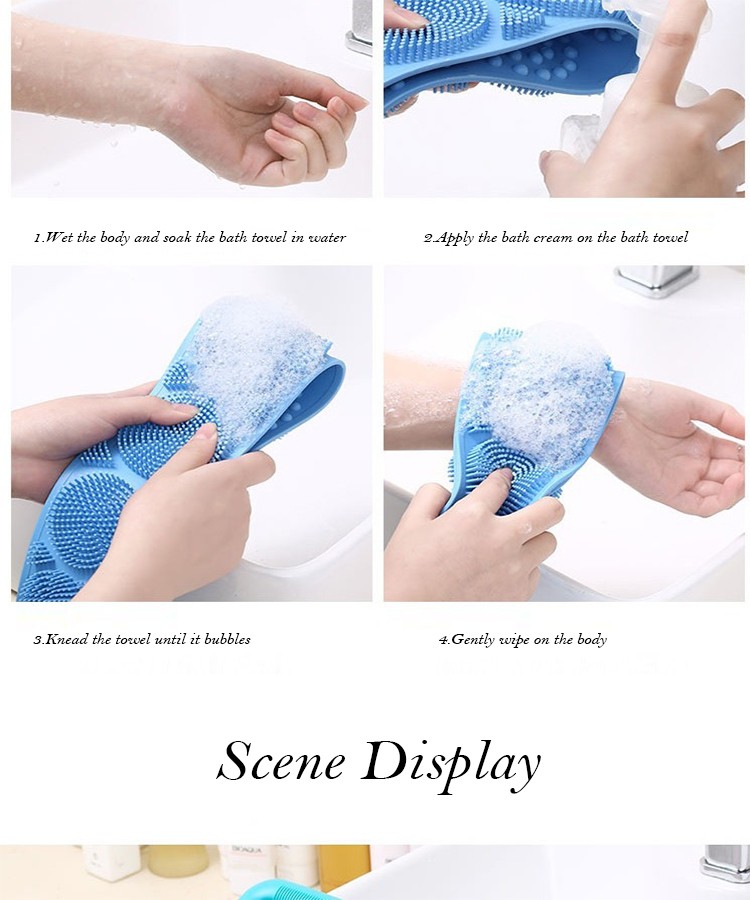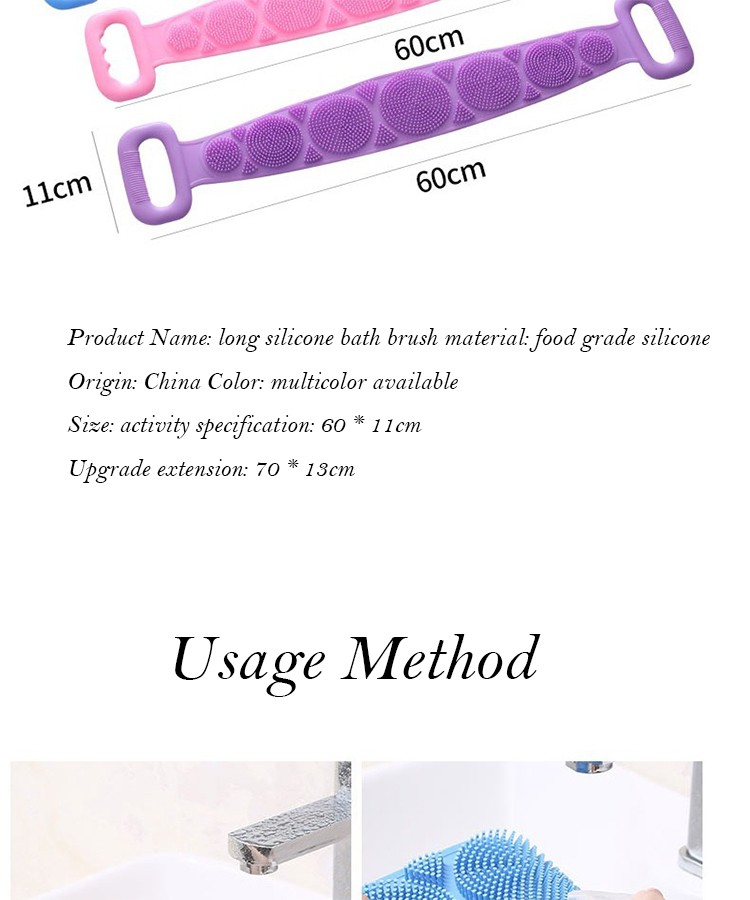 ❤Nazik eksfoliyasyon-1cm yoğun fırça kafasını uzatır, kirleri temizlemek için gözeneklere nüfuz eder ve ferahlatır. Silikon sırt fırçalayın hassas cildi tahriş etmek için çok kaba değildir. Banyo duş silikon vücut fırçası, banyo kemeri peeling vücut fırçası kemer yıkama