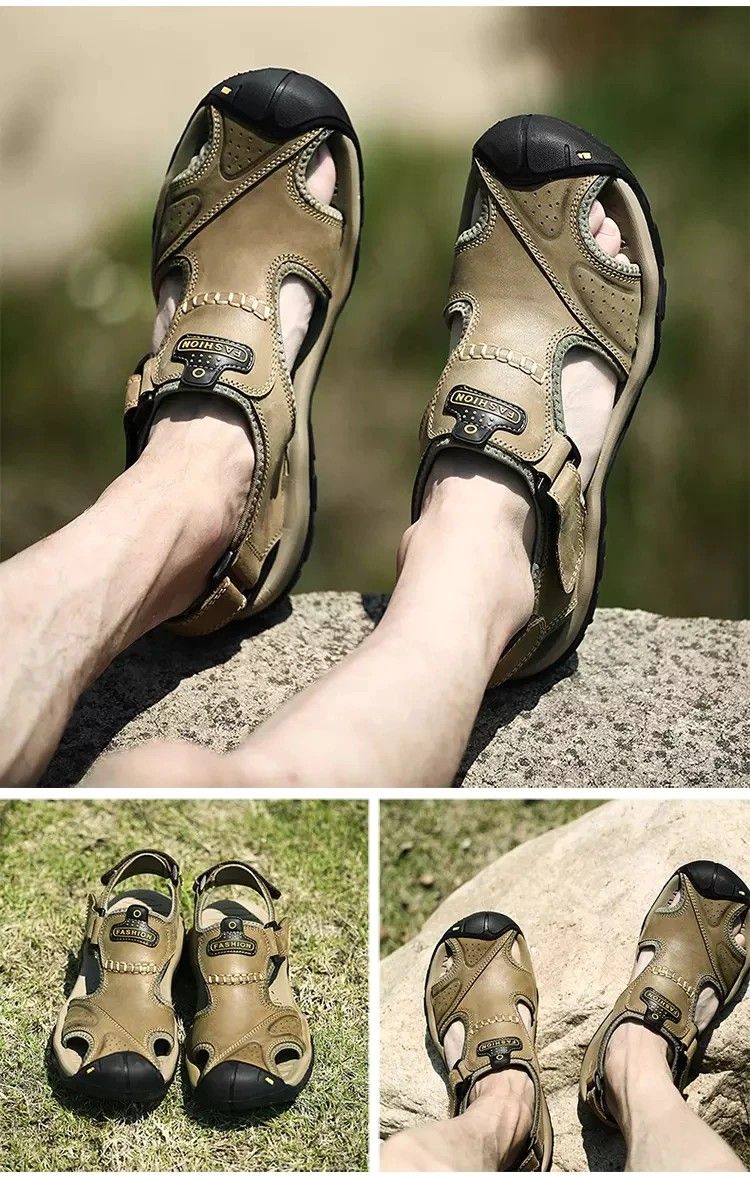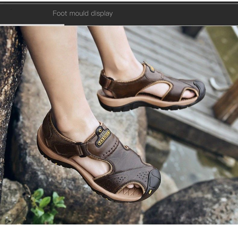 en yeni Hakiki Deri Erkek Ayakkabısı Yaz Yeni Büyük Oğlan Erkek Sandalet Erkek Sandalet Moda Sandalet Terlik Büyük Oğlan 38-47