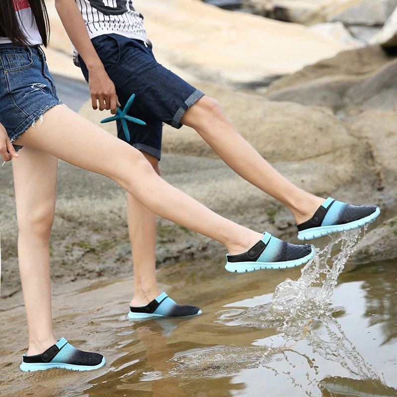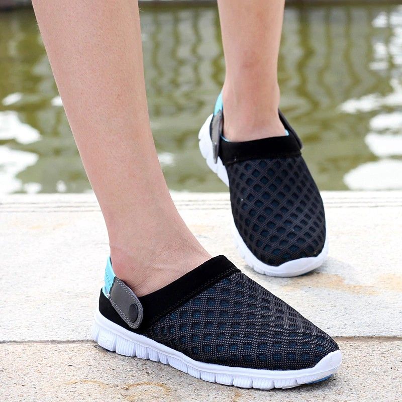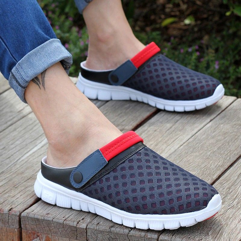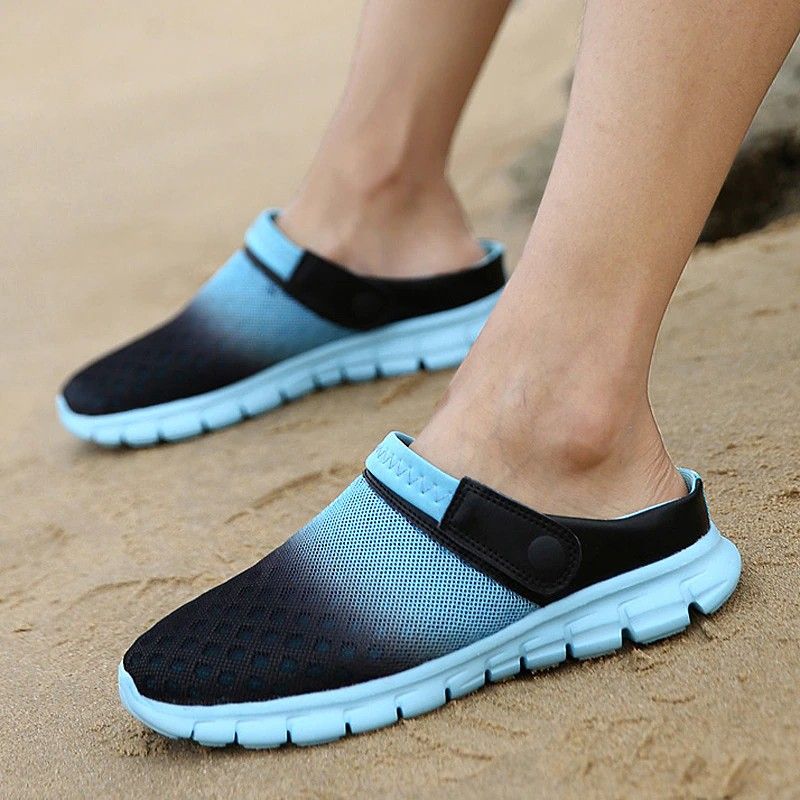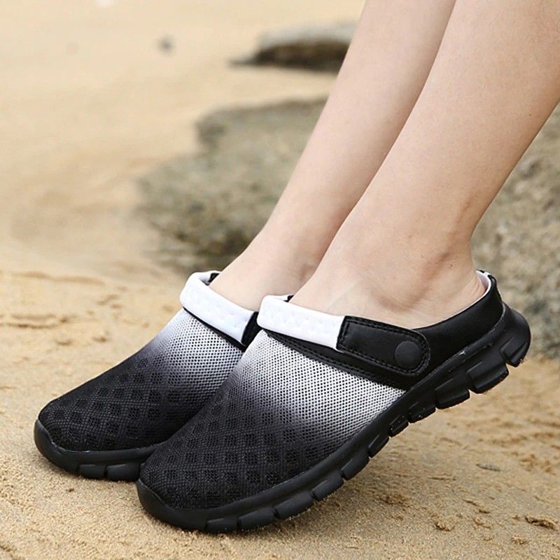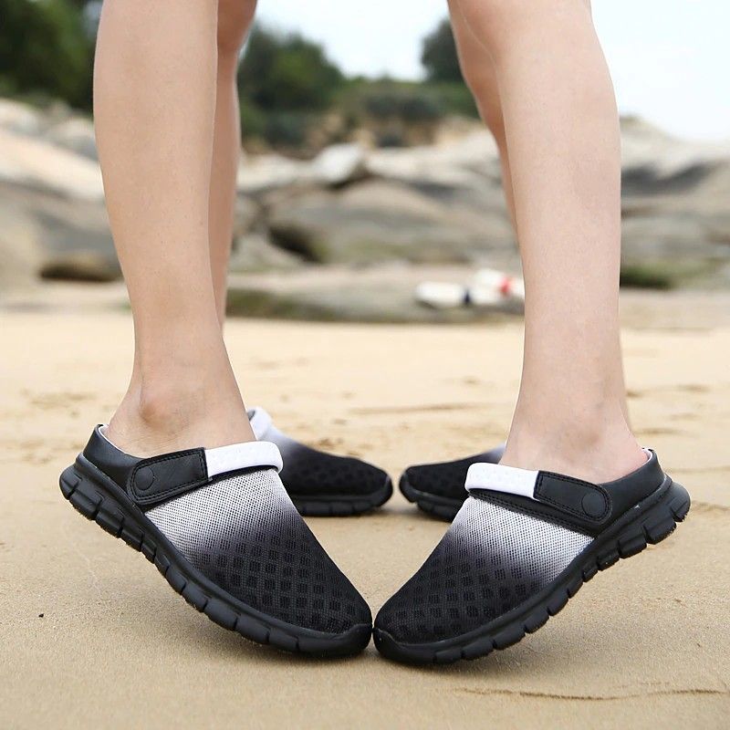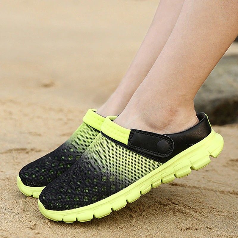 en yeni Erkek Kadın Yaz Sandalet Örgü Katır Nefes Yastıklı Plaj Flip Flop Ayakkabı Katı Düz Banyo Terlikleri Dış Erkek Terlik