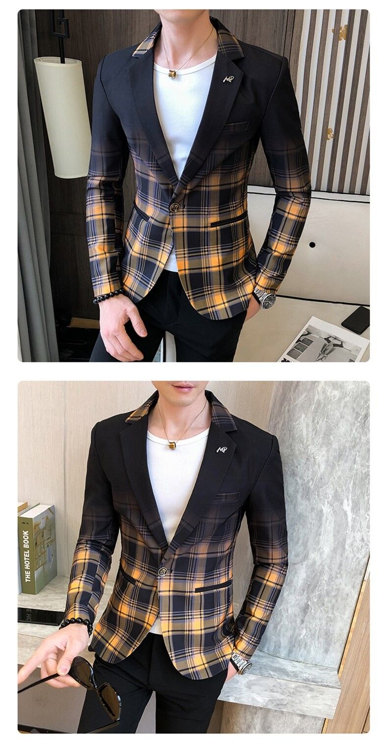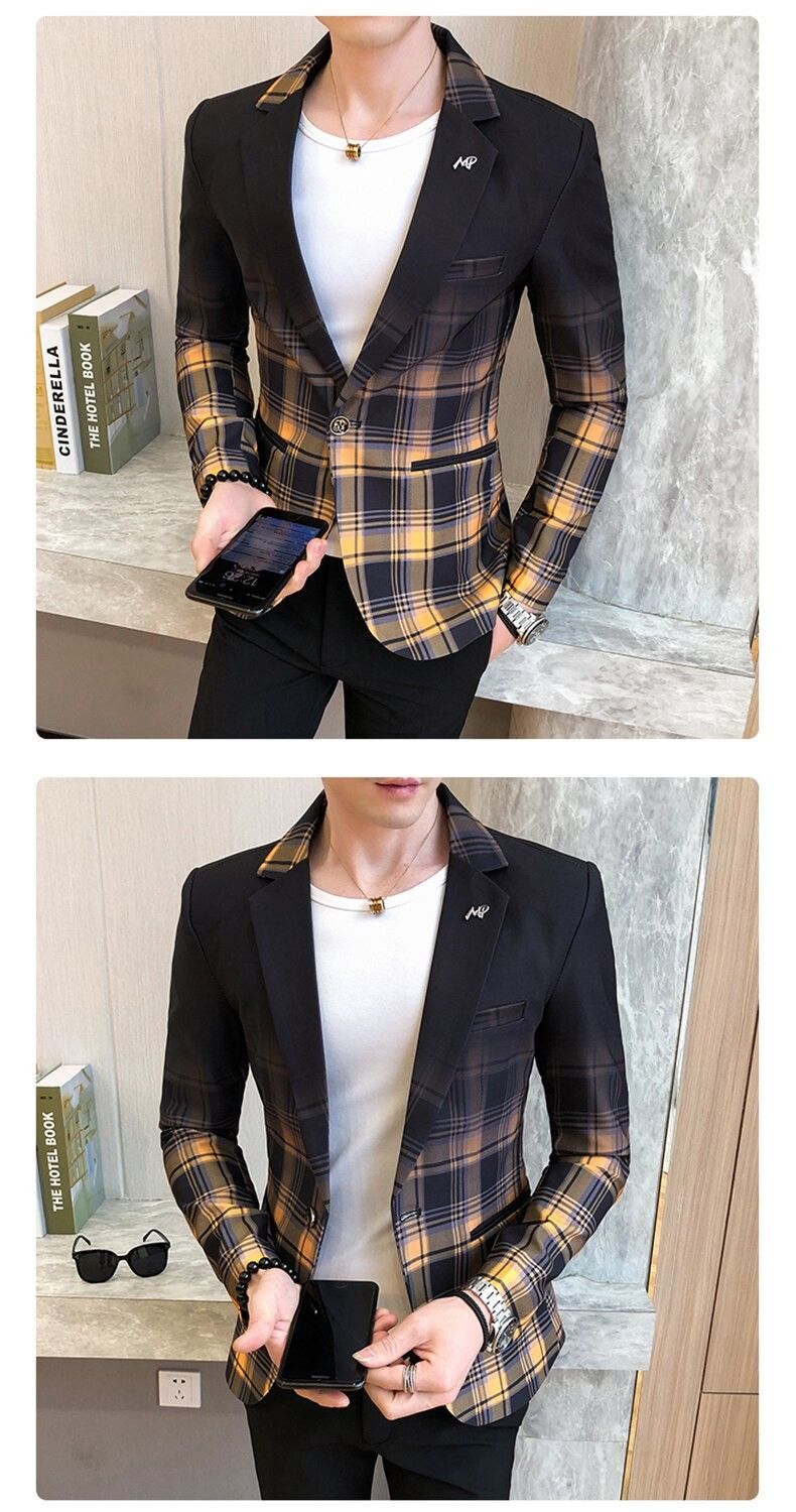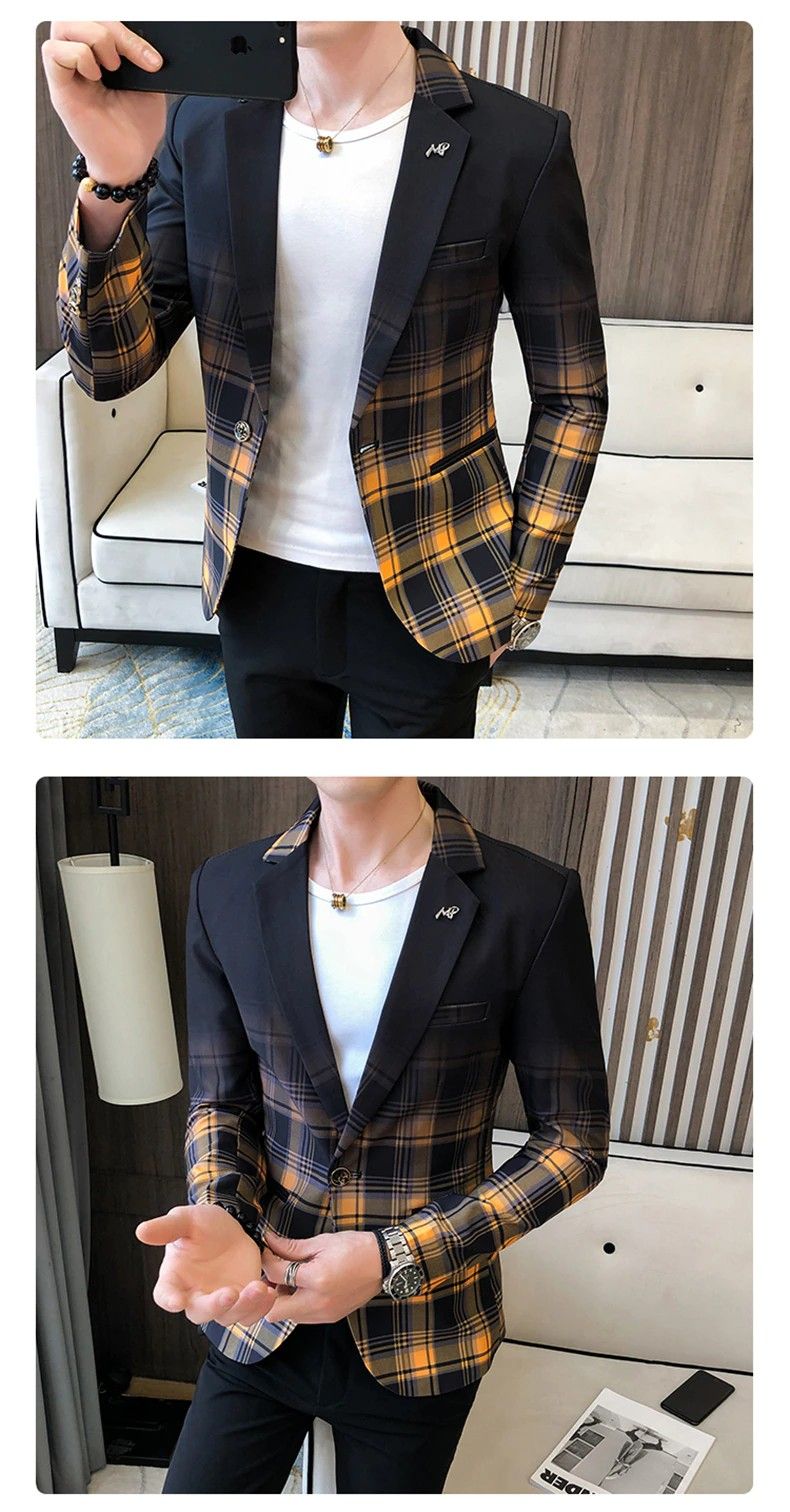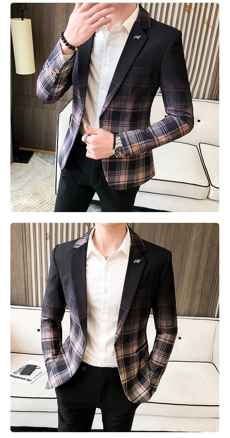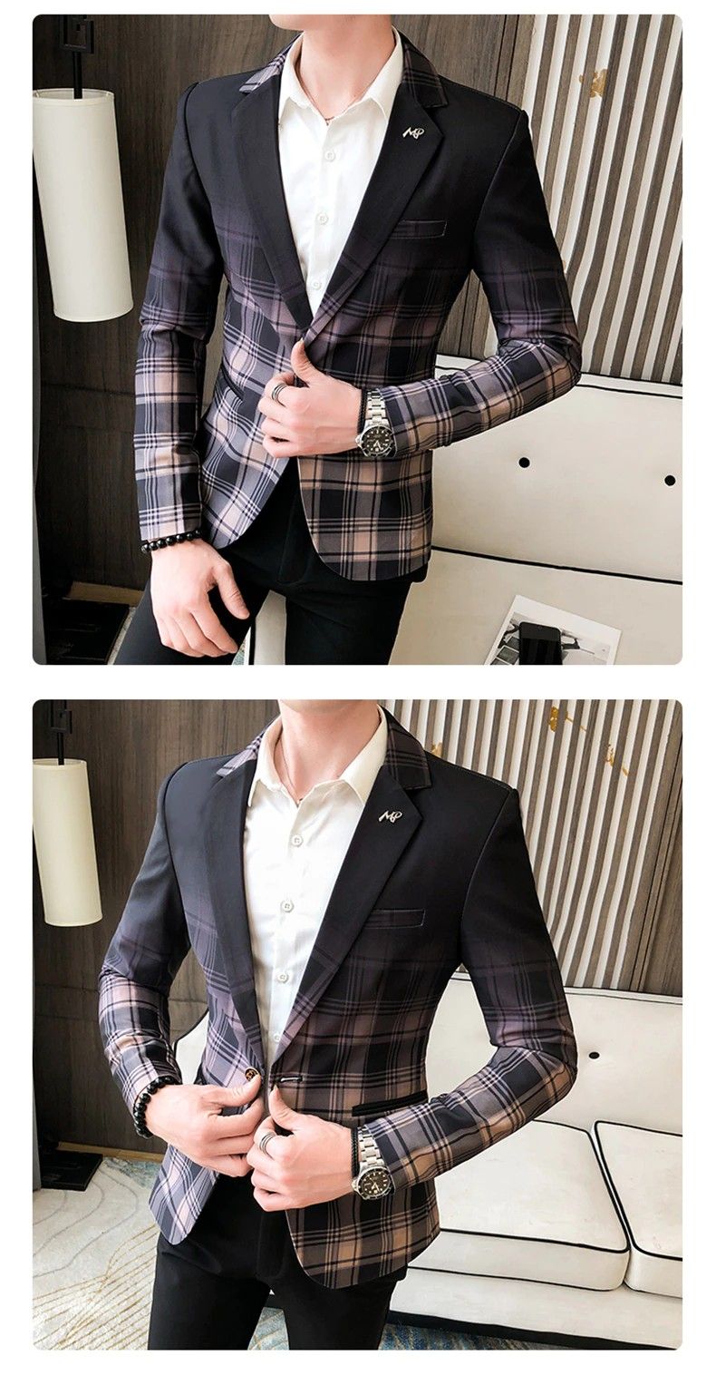 en yeni Yeni Stil Premium Renk Şeması Erkekler Için Slim Fit Iş Ekose Blazers/Erkek Moda Eğlence Takım Elbise Ceket Ekose Ceketler S-3Xl