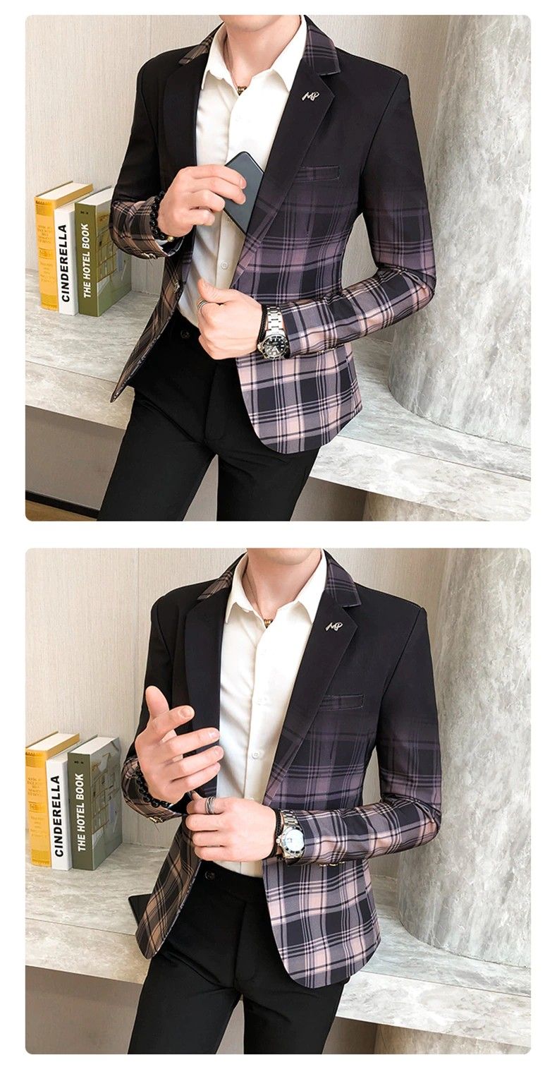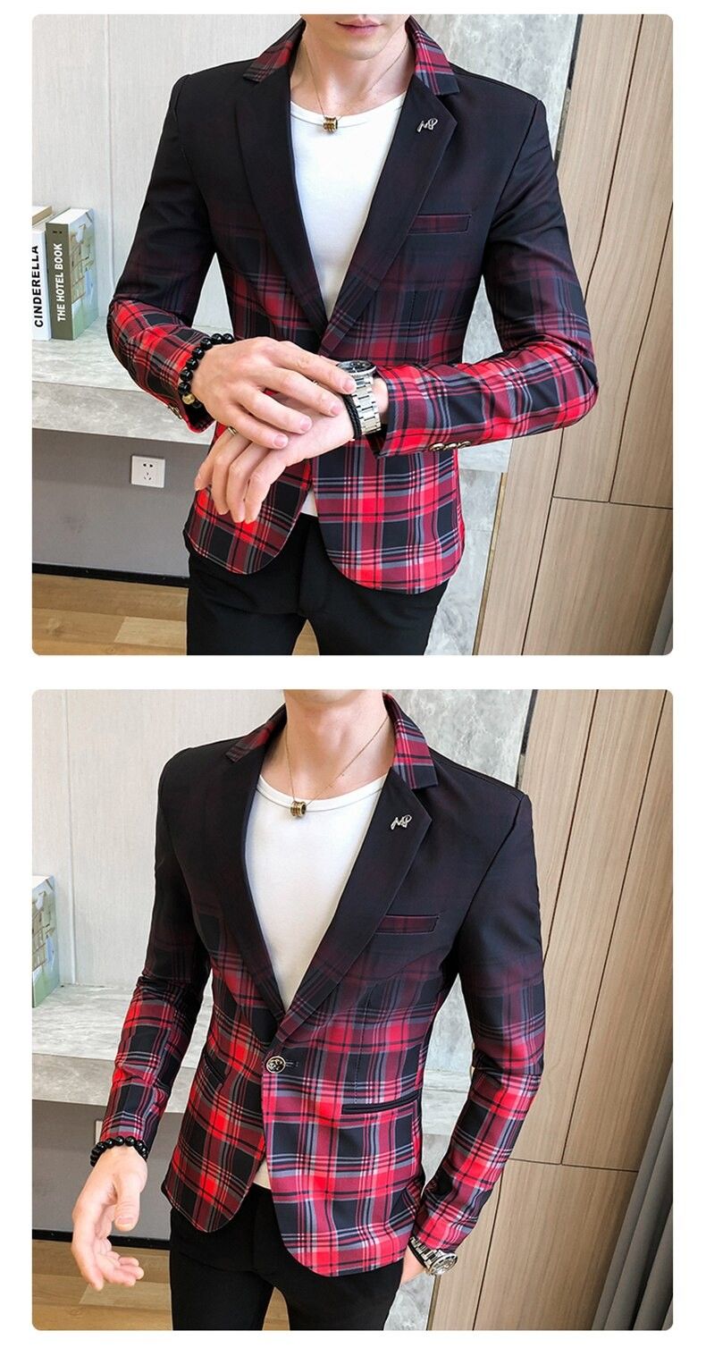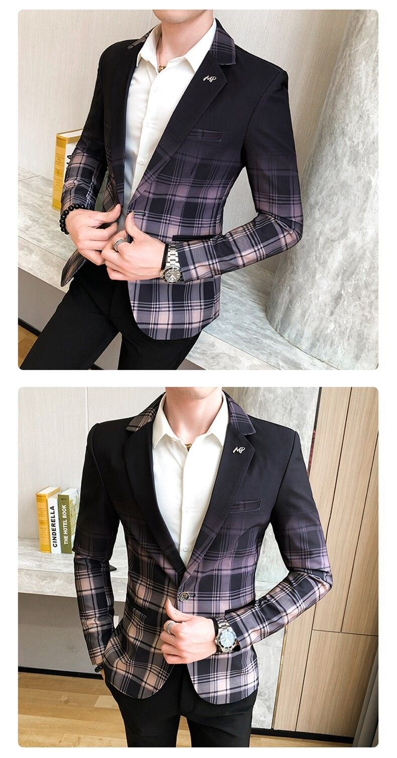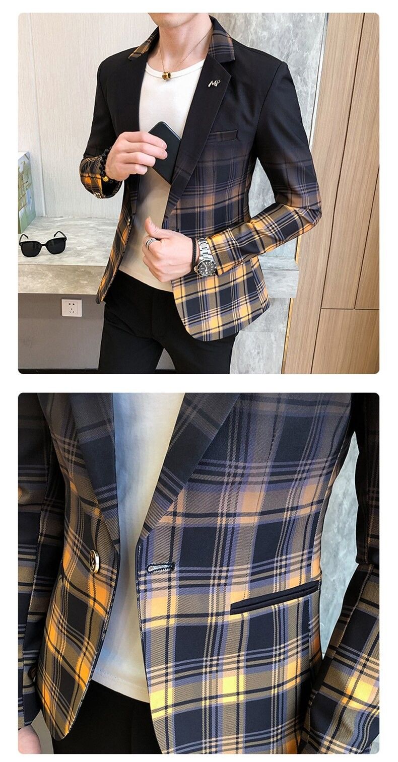 en yeni Yeni Stil Premium Renk Şeması Erkekler Için Slim Fit Iş Ekose Blazers/Erkek Moda Eğlence Takım Elbise Ceket Ekose Ceketler S-3Xl