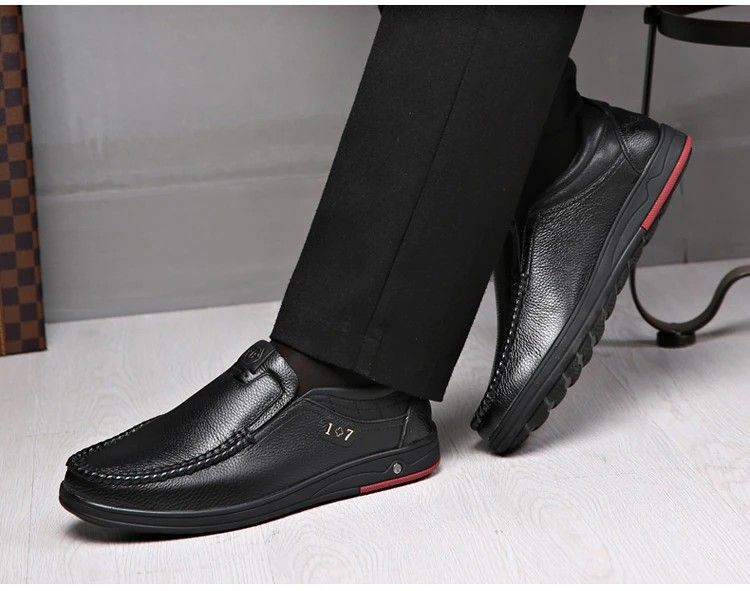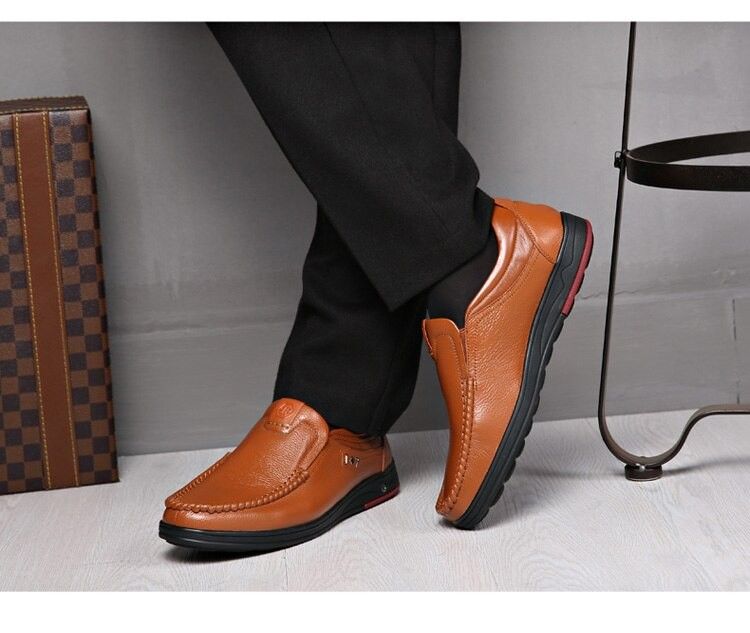 en yeni Yeni Erkek Hakiki Deri Ayakkabı Boyutu 38-47 Kafa Deri Yumuşak Kaymaz Sürüş Ayakkabısı Adam Bahar Deri Ayakkabı