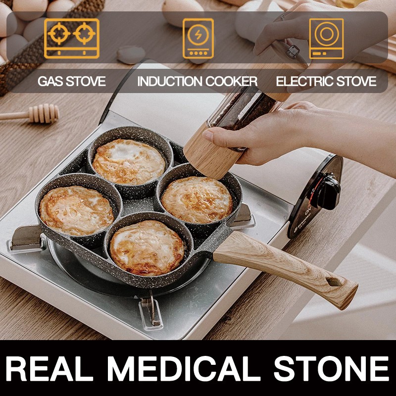 Yapışmaz Kızartma Tavası 2/4 Delik Pişirme Tencere Biftek Gözleme Yumurta Tencere Kalın Alt Tencere Ahşap Saplı Tava Mutfak Için Mutfak Eşyaları מחבת כלים למטבח סירים למטבח סיר סיר כלי שולחן מחבת טפלון סט מחבת לבית
