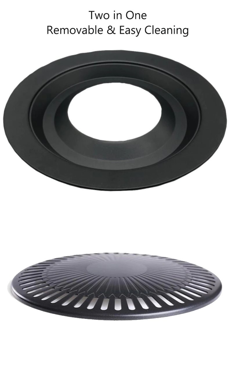 Su dolu dış halka pişirme sırasında yağ ve meyve suyu yakalar, duman ve sıçramayı ortadan kaldırır.