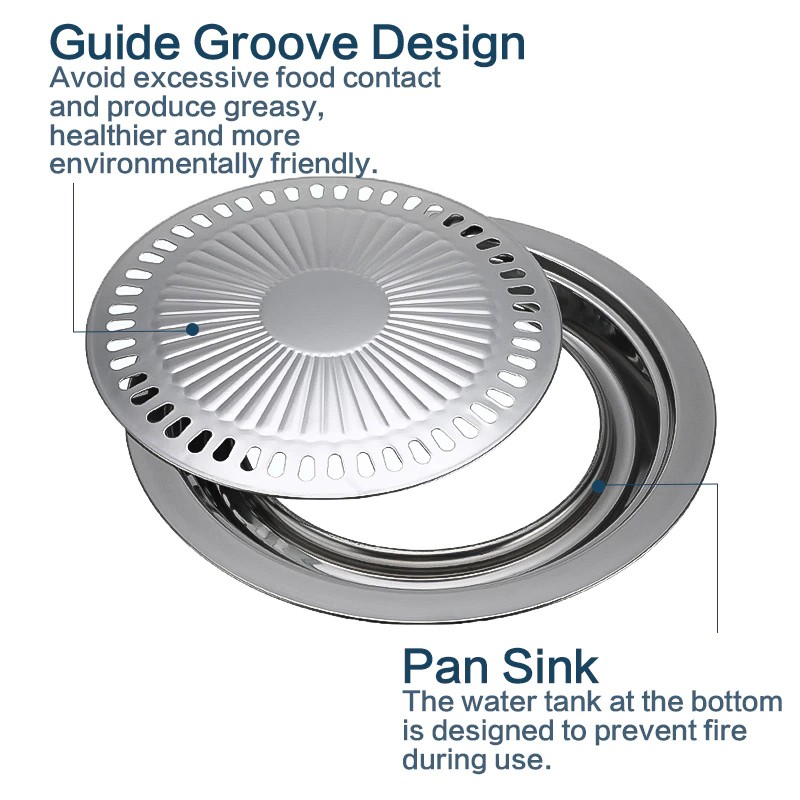 İç plakanın oluk tasarımı, yağlı etleri ve sebzeleri önlemeye yardımcı olur.