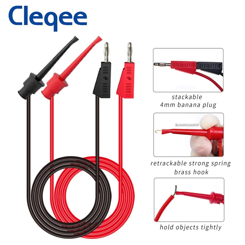 PVC yalıtım ile yapılmış, test kabloları dayanıklı ve esnektir.4mm istiflenebilir muz fiş tüm multimetreler ile uyumludur. Mini-grabbers, telleri ve diğer nesneleri sıkıca yerinde tutan güçlü yerleşik pirinç yaylı kancalara sahiptir.