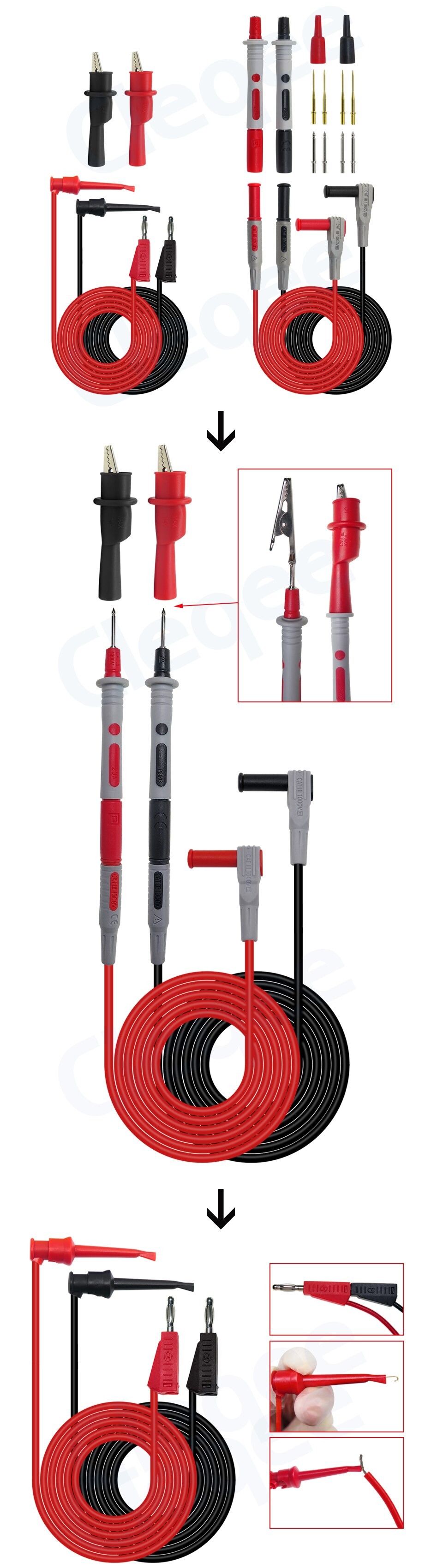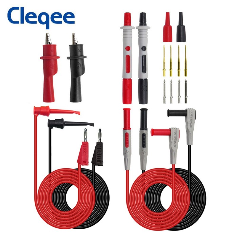 Cleqee P1308B 18 Adet Test Kurşun Kiti 4Mm Muz Fiş Testi Kanca Kablo Değiştirilebilir Multimetre Probe Testi Tel Probu Timsah Klip