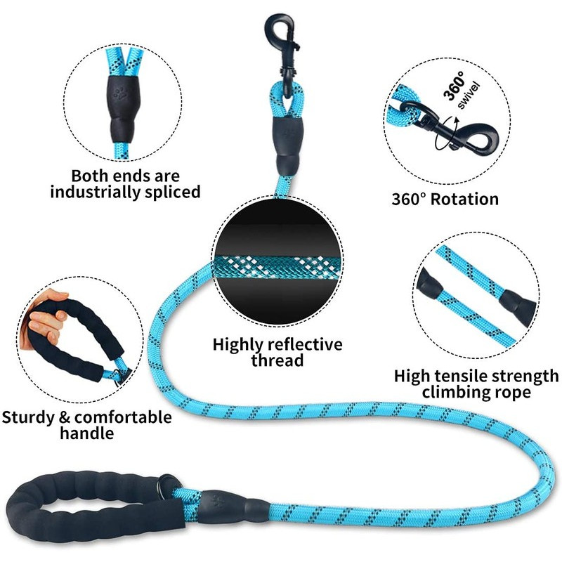 Evcil Hayvan Tasması Yansıtıcı Güçlü Köpek Tasma 1.5M Uzun Rahat Yastıklı Saplı Ağır Eğitim Dayanıklı Naylon Halat Tasma