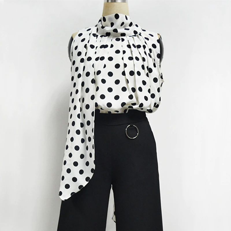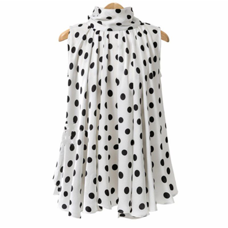 Artı Boyutu Yay Baskı Büyük Nokta Balıkçı Yaka Bluz Gömlek 4Xl 5Xl Streetwear Kolsuz Gevşek Bluz