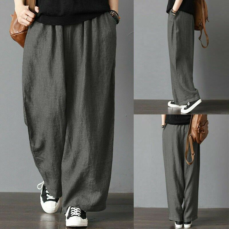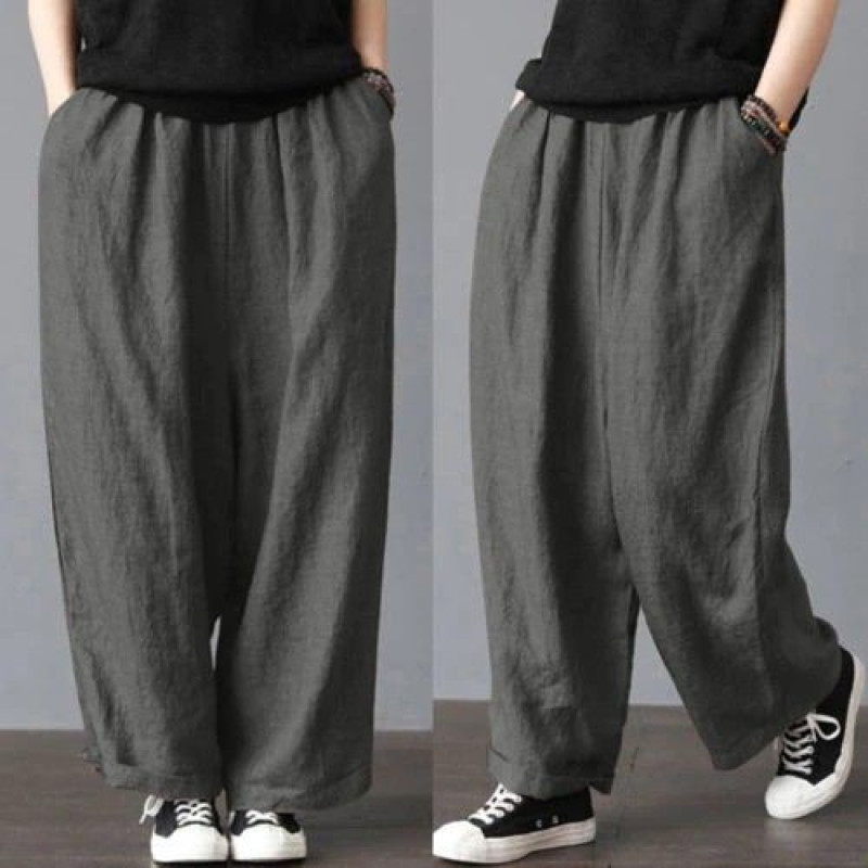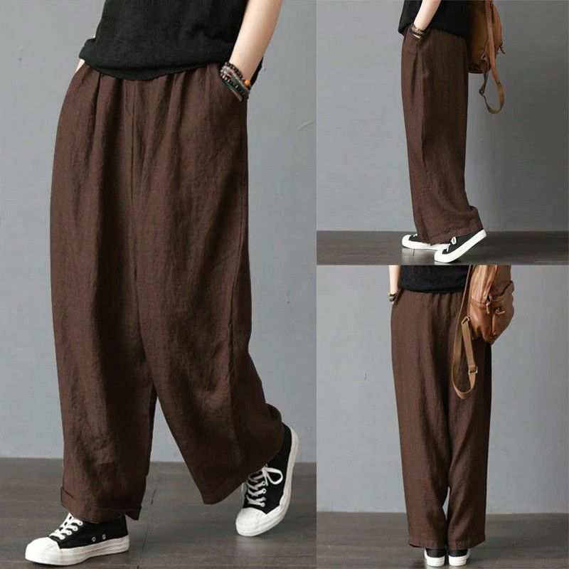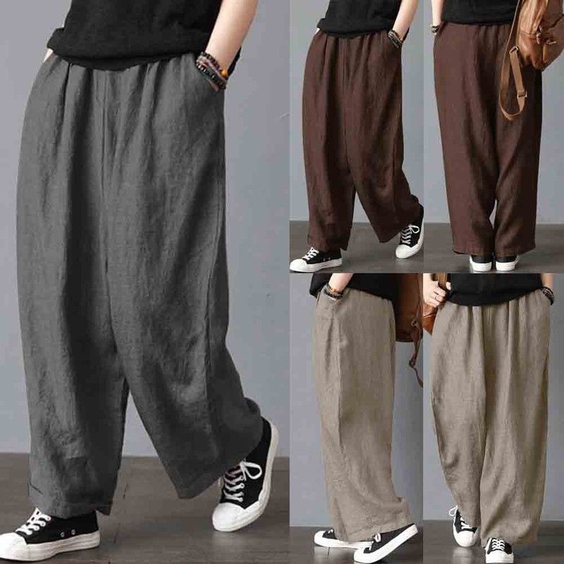 Artı Boyutu Erkek Pantolon Pamuk Keten Geniş Bacak Harem Pantolon Gevşek Rahat Moda Eğlence Tatil Plaj Kargo Pantolon