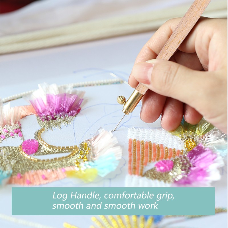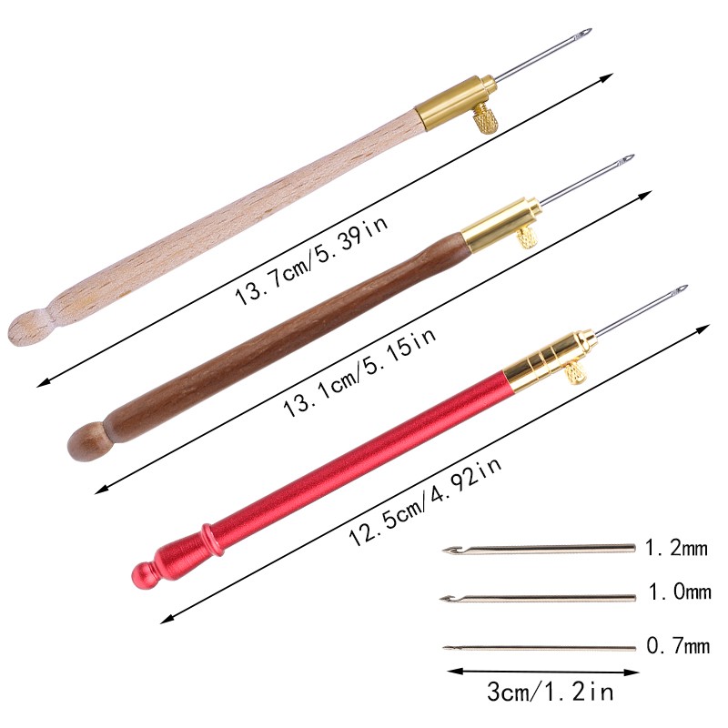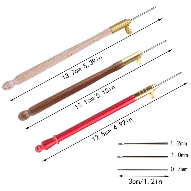 Tambour nakış seti, dahil iğne boyutları 0.7mm, 1.0mm, 1.2mm.