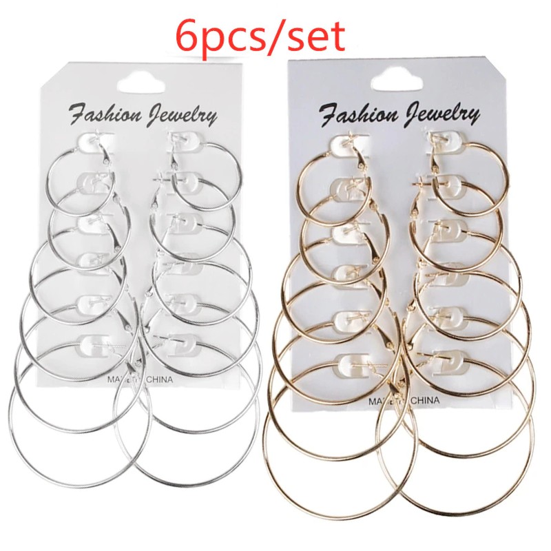 6 Çift Punk Hoop Küpe Seti Büyük Daire Küpe Takı Kadınlar Kızlar Için Steampunk Kulak Klipsi Punk Tarzı Küpe