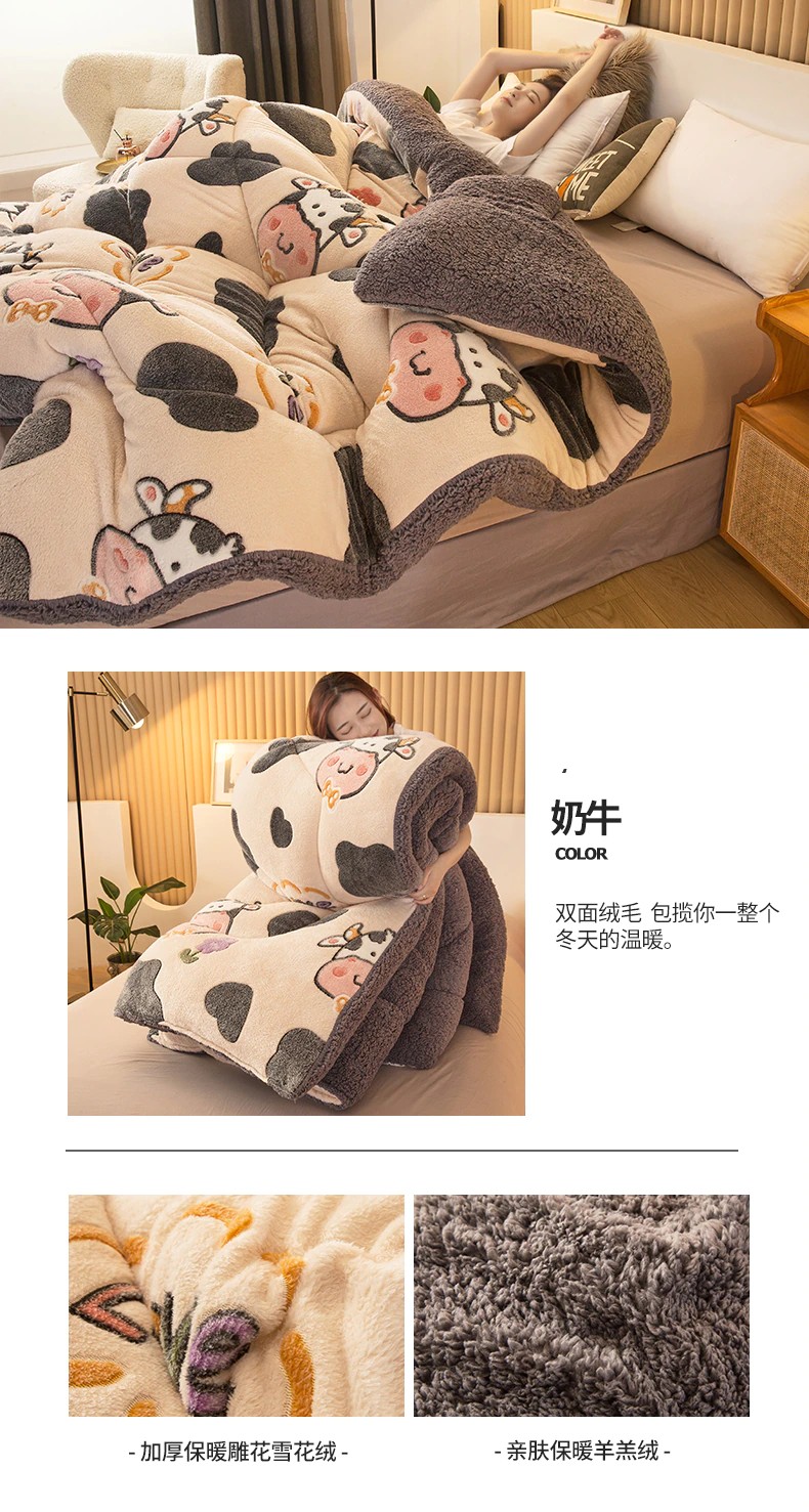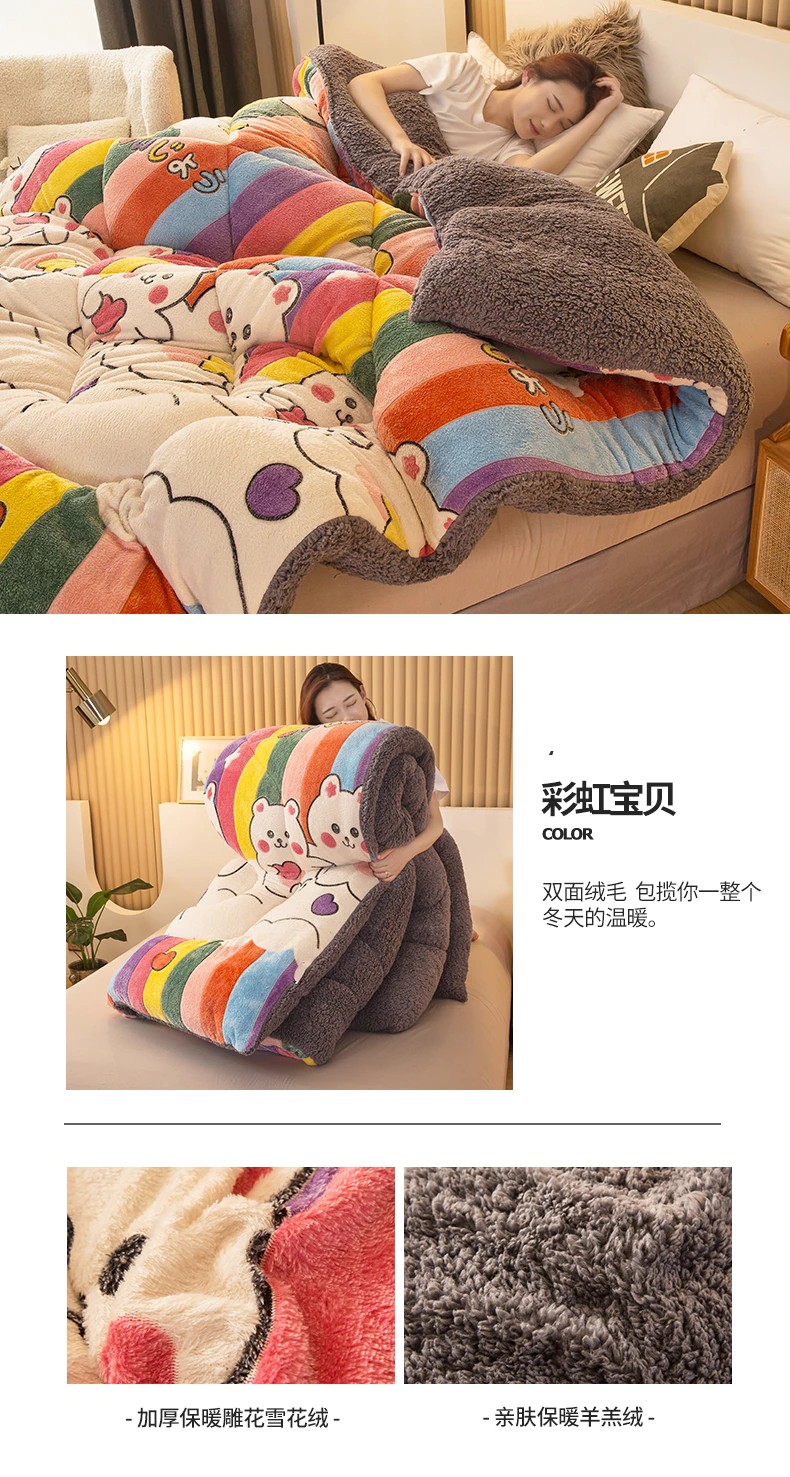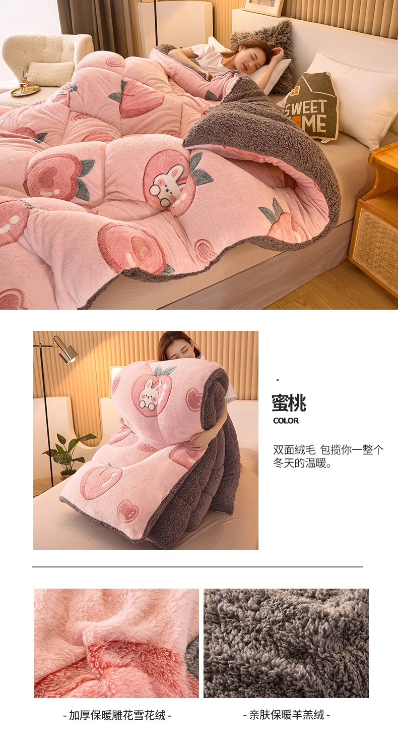 Yorgan Kış Battaniyesi Çift Taraflı Kadife Yorgan Kaşmir Pamuk Sıcak Dört Mevsim Peluş Yorgan