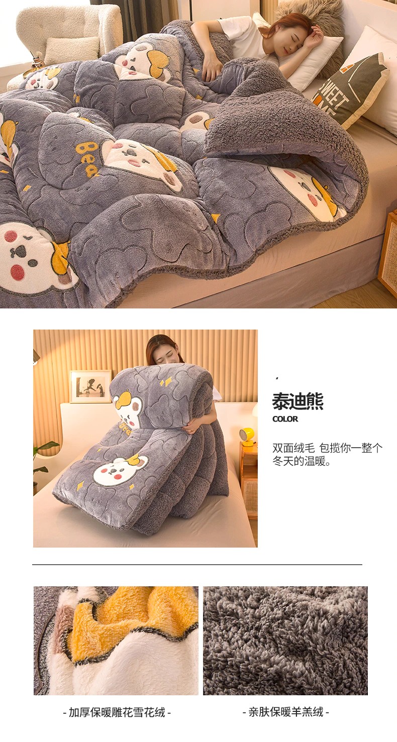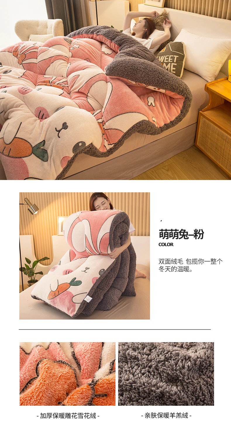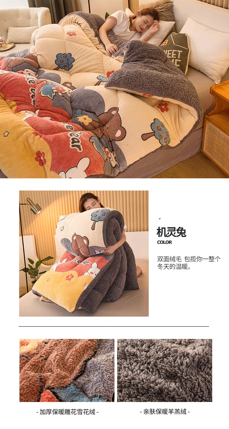 Yorgan Kış Battaniyesi Çift Taraflı Kadife Yorgan Kaşmir Pamuk Sıcak Dört Mevsim Peluş Yorgan