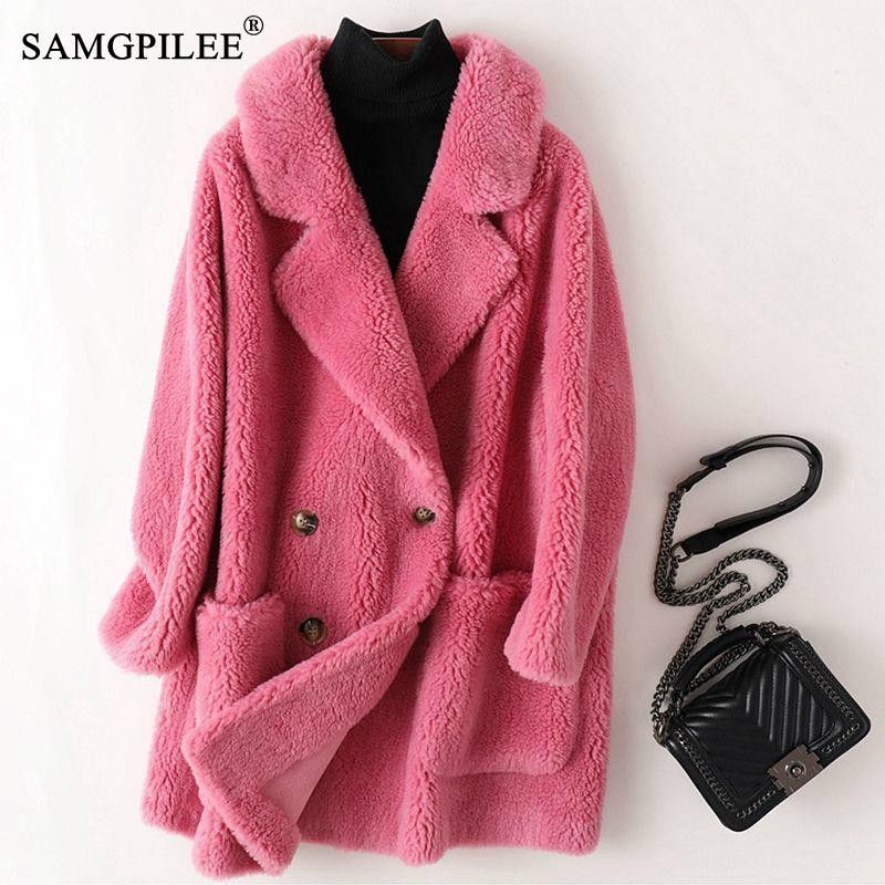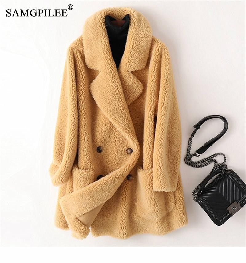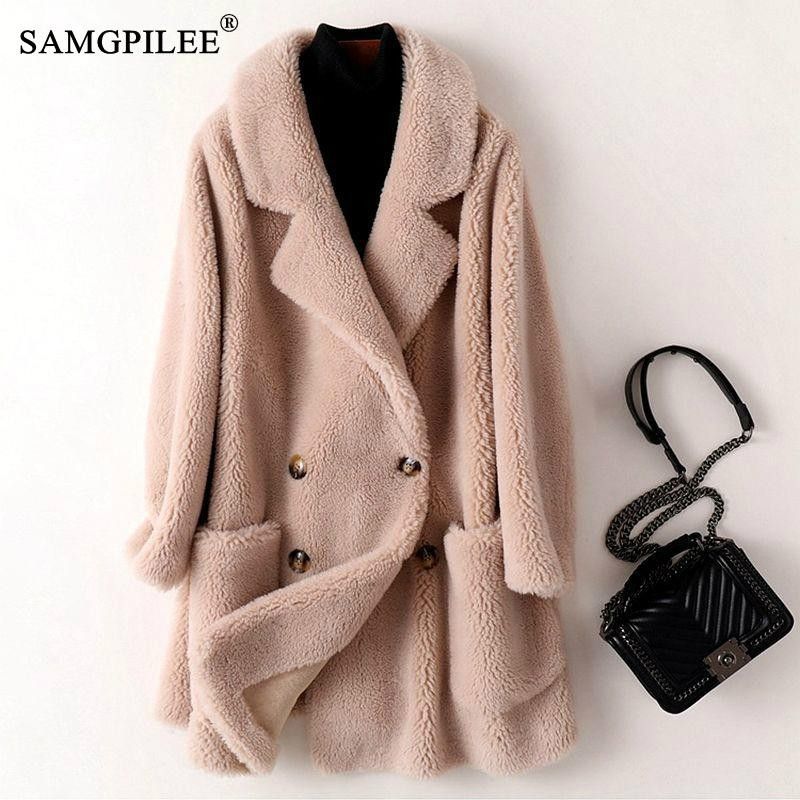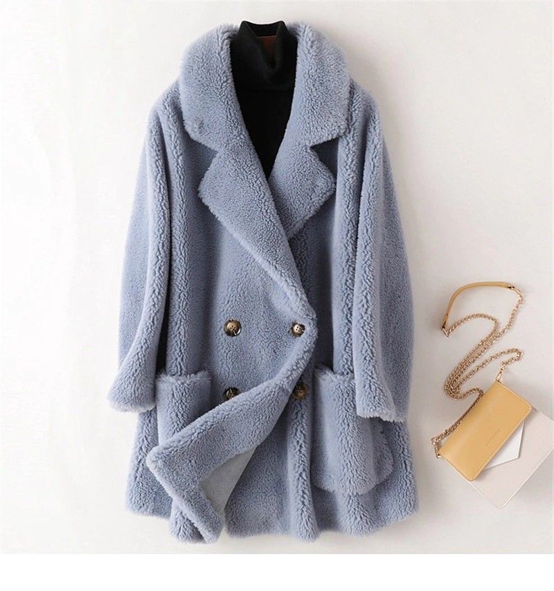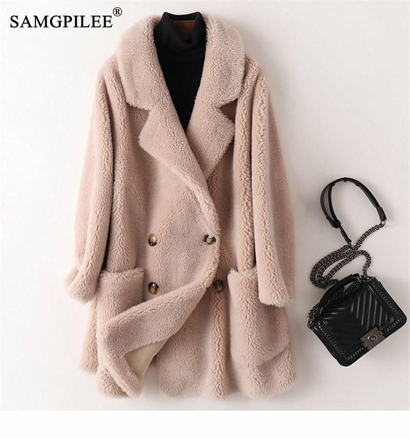 Gerçek Kürk Ceket Yüksek Kalite Avustralya Bayan Yün paltolar Kalın Sıcak Zarif Gevşek Büyük Boy Uzun Dış Giyim Kış Ceket Kadınlar Için